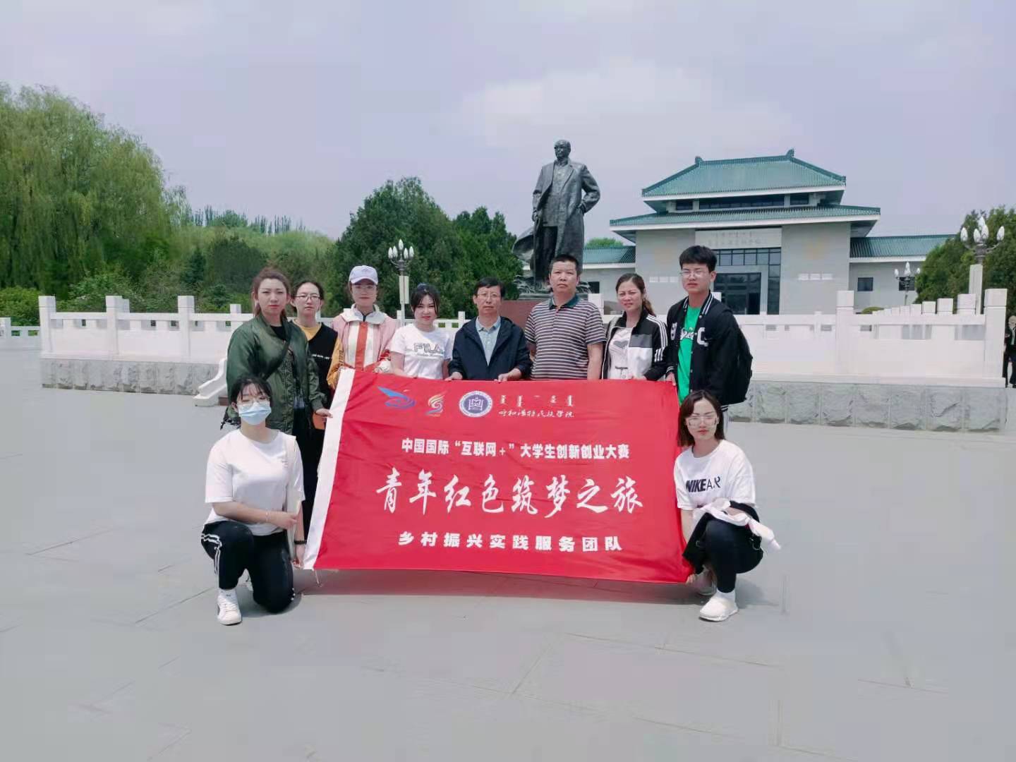 為深入貫徹落實(shí)習(xí)近平總書記給“青年紅色筑夢(mèng)之旅”大學(xué)生重要回信精神,根據(jù)教育部相關(guān)要求,增強(qiáng)青年創(chuàng)新意識(shí),激勵(lì)廣大青年堅(jiān)定理想信念,2021年5月20日,創(chuàng)新創(chuàng)業(yè)學(xué)院院長哈斯同力嘎、化學(xué)與環(huán)境學(xué)院黨總支副書記鄂亞彬、內(nèi)蒙古自治區(qū)2020年“互聯(lián)網(wǎng)+”大學(xué)生創(chuàng)新創(chuàng)業(yè)大賽銀獎(jiǎng)獲得團(tuán)隊(duì)“北星8號(hào)”,“扎蒙花”團(tuán)隊(duì)師生一行來到烏蘭夫紀(jì)念館,觀偉人事跡,學(xué)偉人精神,憶崢嶸歲月,開展“青年紅色筑夢(mèng)之旅”活動(dòng)。