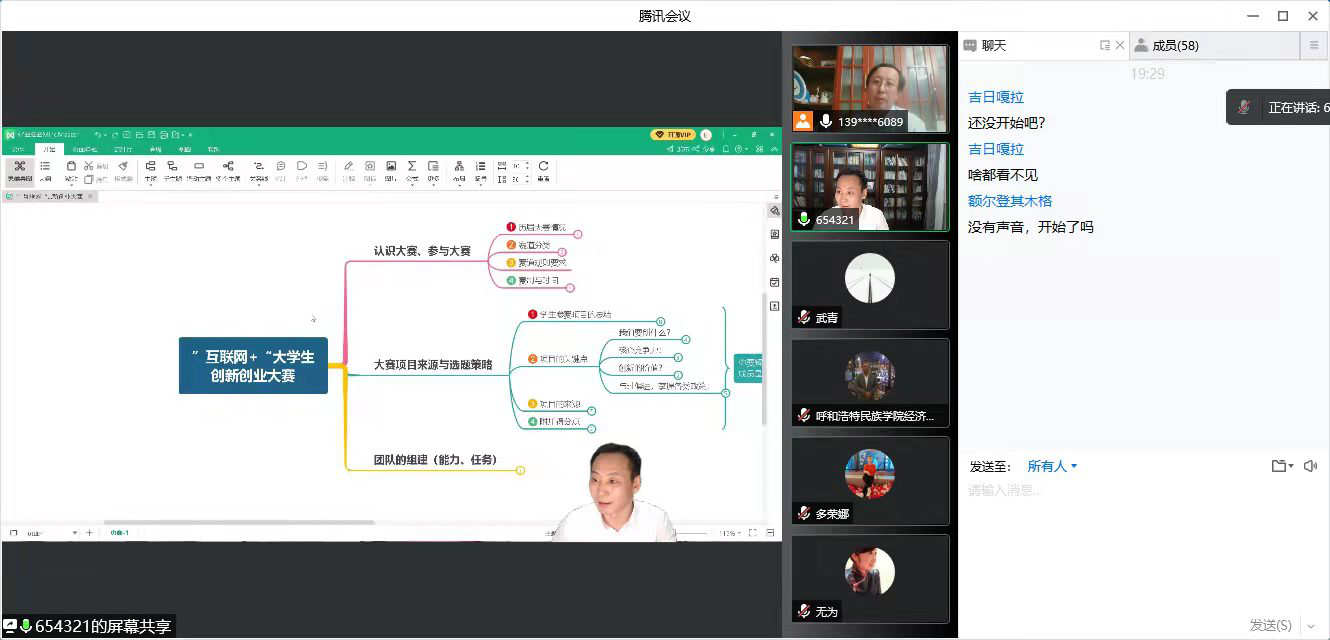 創新創業學院于3月18日(星期五)下午19點30分以視頻會議的形式舉辦“互聯網+”創新創業大賽師資培訓會。會議由創新創業學院院長哈斯同力嘎主持。教務處副處長哈斯額爾德尼為大家解讀講解大賽相關事項。學校各學院分管“互聯網+”大學生創新創業大賽負責人、《創新創業思維與訓練》課程授課教師、大學生創新創業訓練項目指導教師、創新創業大賽賽事指導教師等共78人參與了本次線上培訓會議。