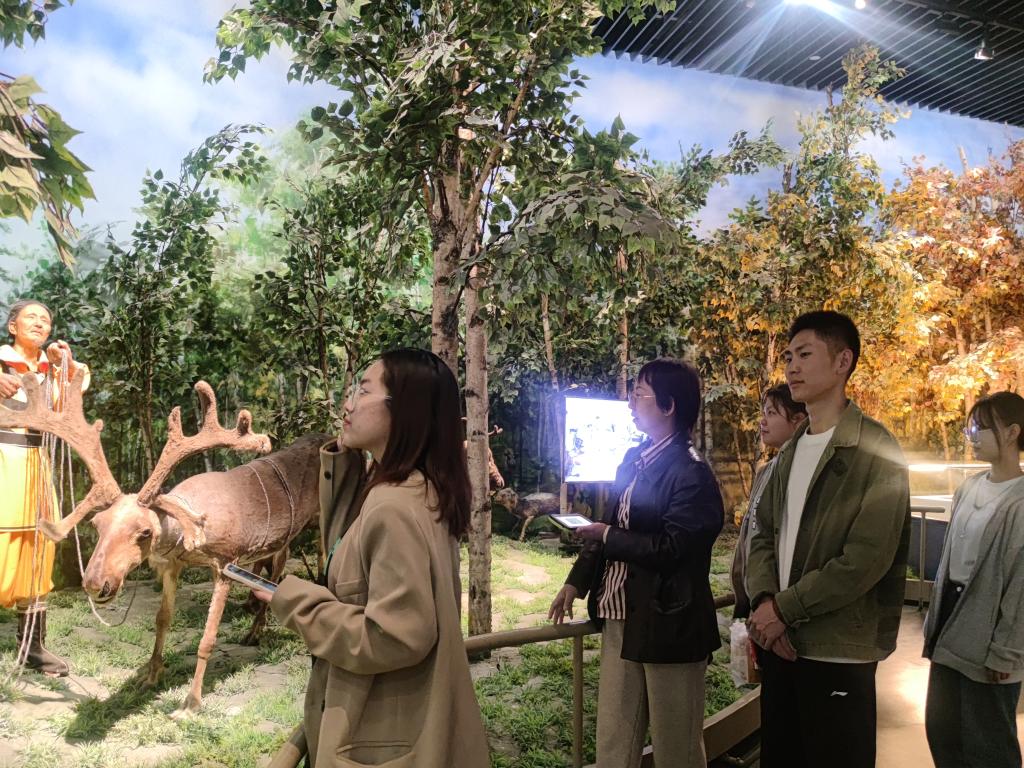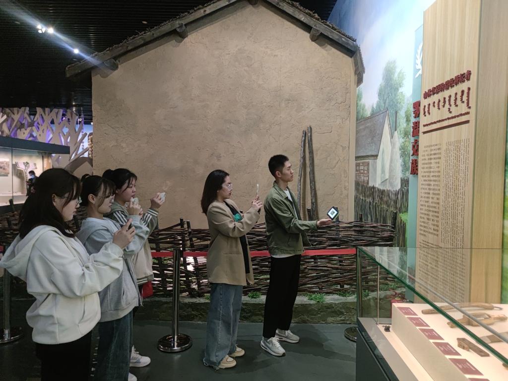 “民藝承襲”團隊深入?yún)⒂^了內(nèi)蒙古博物院“北疆樺歌”展廳,通過實景還原景搭,多維信息介紹展板,手工藝品近景展示等展塊,閱鄉(xiāng)彩部落習俗,覽民俗風情文化,見古老手工技藝,品文化發(fā)展歷史,更加深入了解學習體驗中華優(yōu)秀傳統(tǒng)文化北疆三少民族----達斡爾族、鄂溫克族、鄂倫春族民俗風情和藝術(shù)文化,感受瑰麗中華民族優(yōu)秀傳統(tǒng)文化、歷史成就和文化傳承,引導青年學生深刻領悟黨的領導、文化自信、堅定理想信念和歷史使命。
