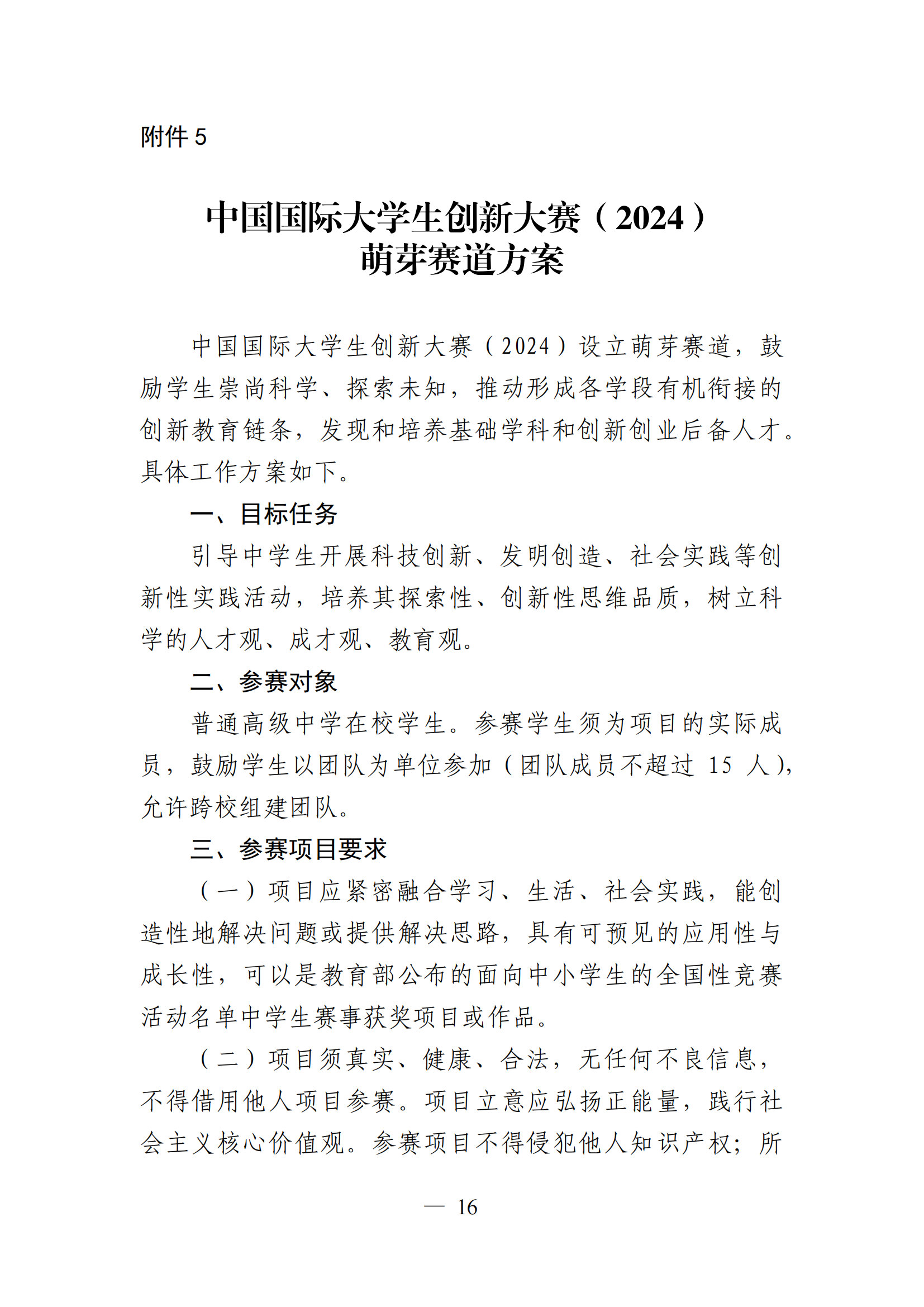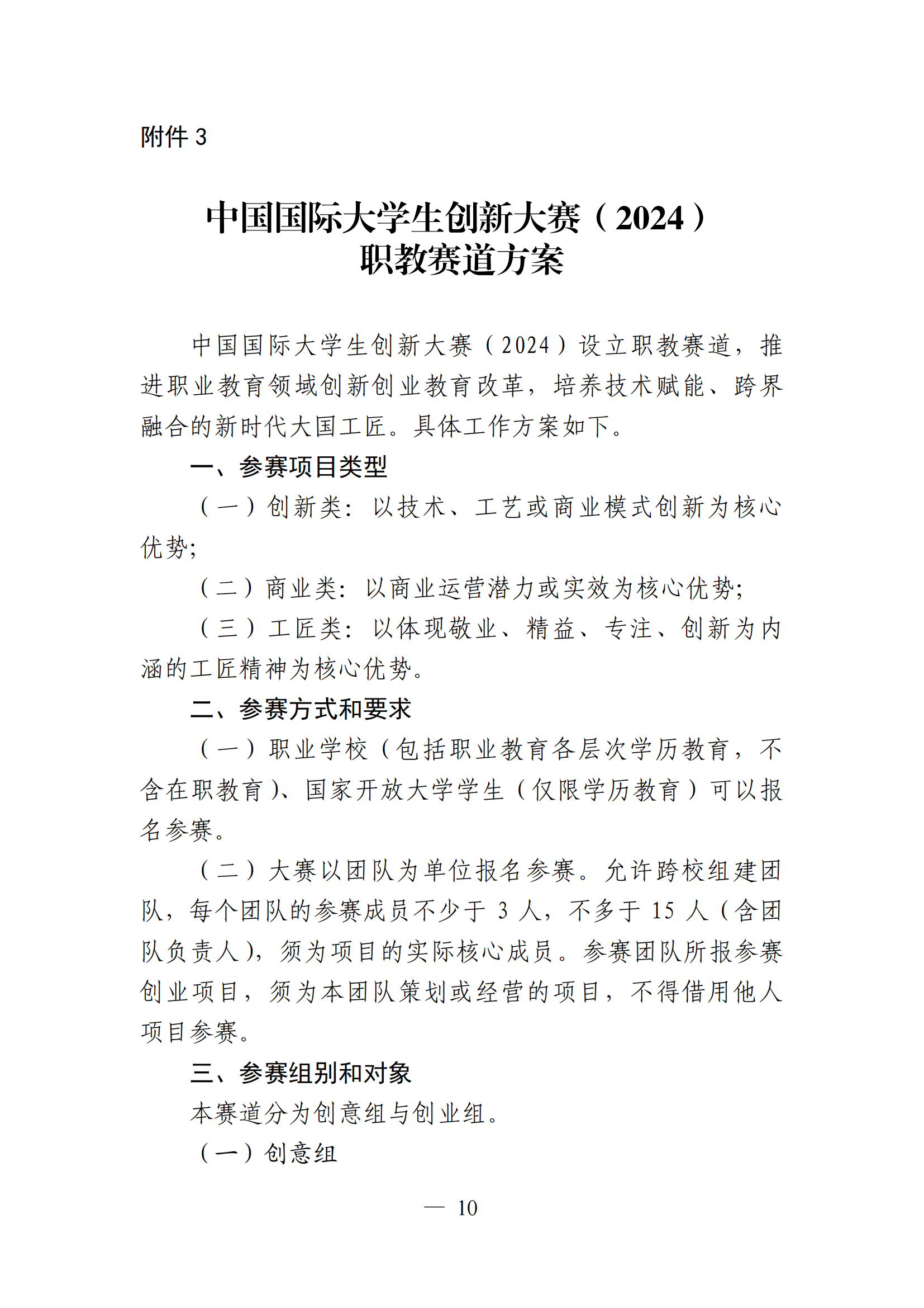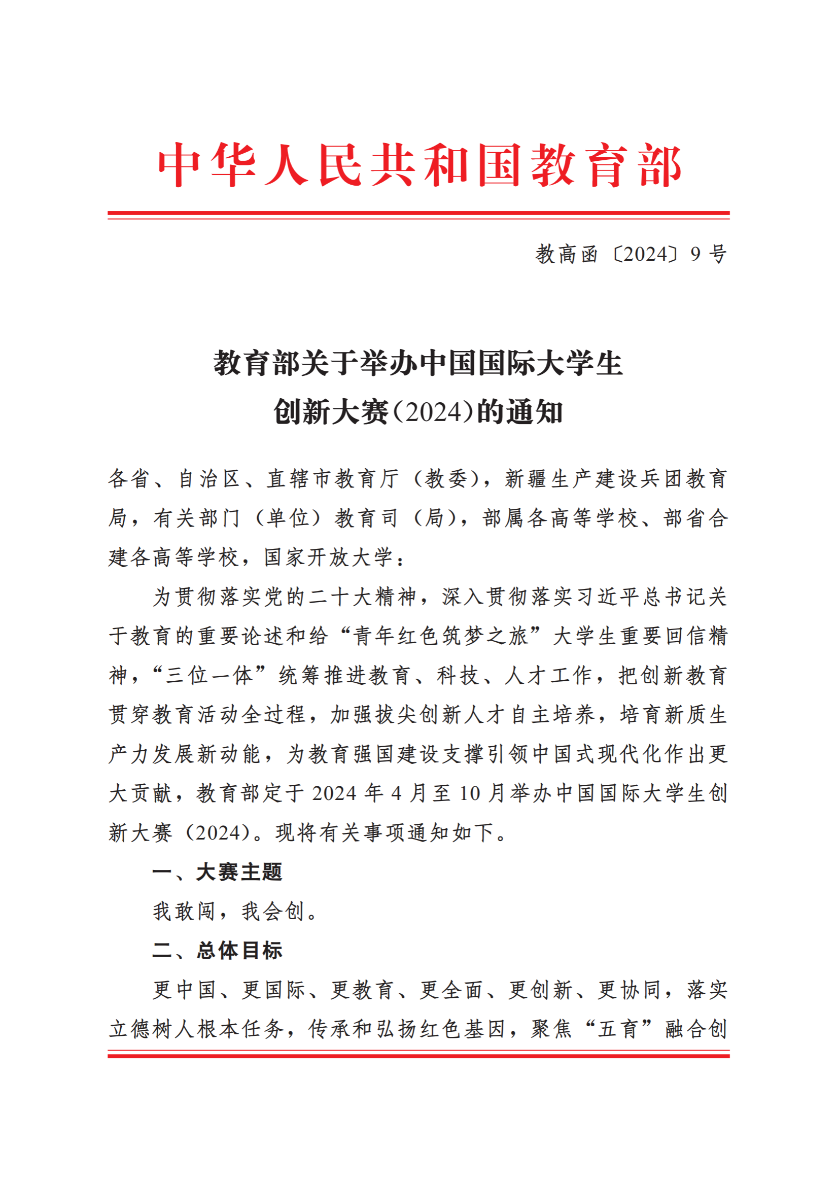 教育部關于舉辦中國國際大學生創新大賽(2024)的通知