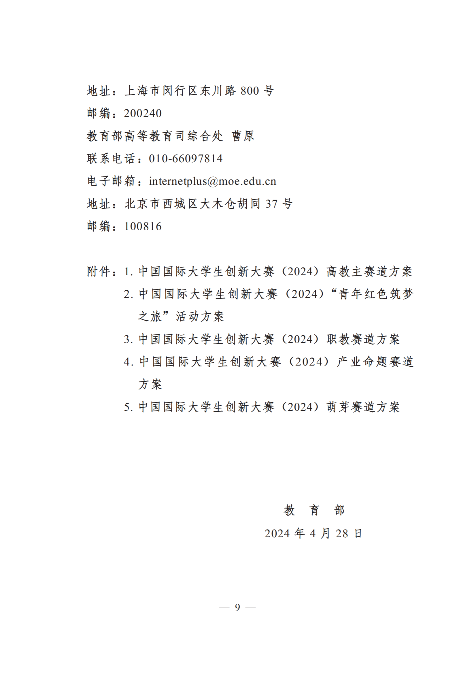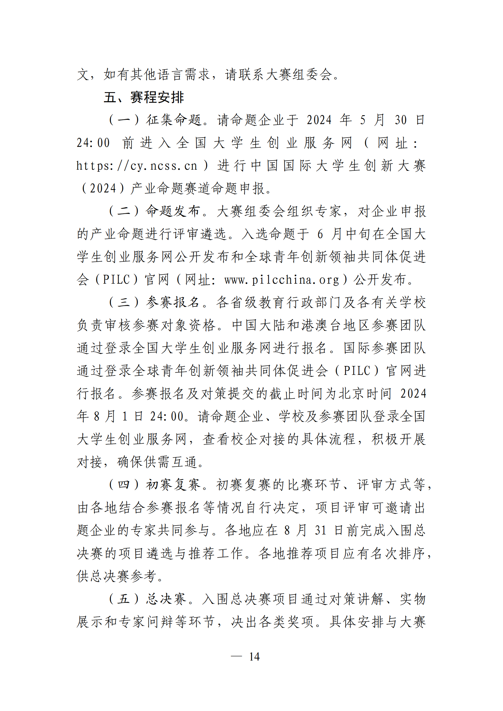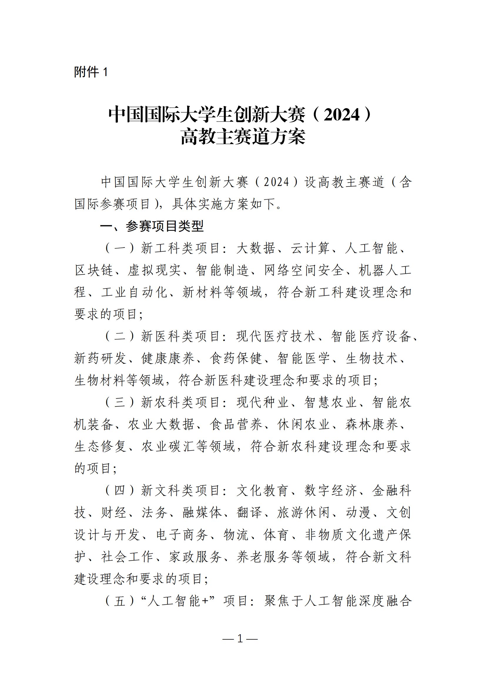 教育部關于舉辦中國國際大學生創新大賽(2024)的通知