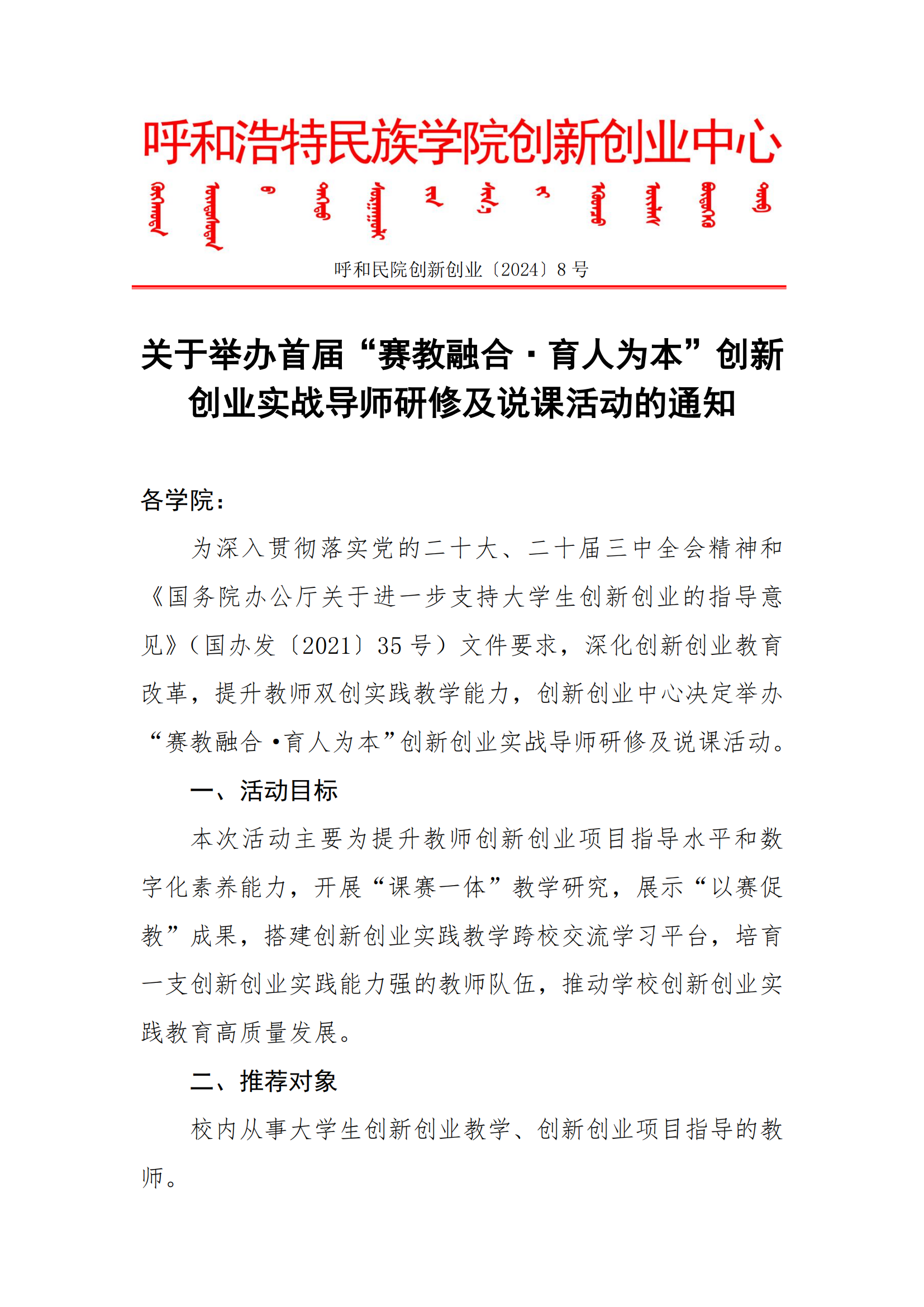 關于舉辦首屆“賽教融合·育人為本”創新創業實戰導師研修及說課活動的通知