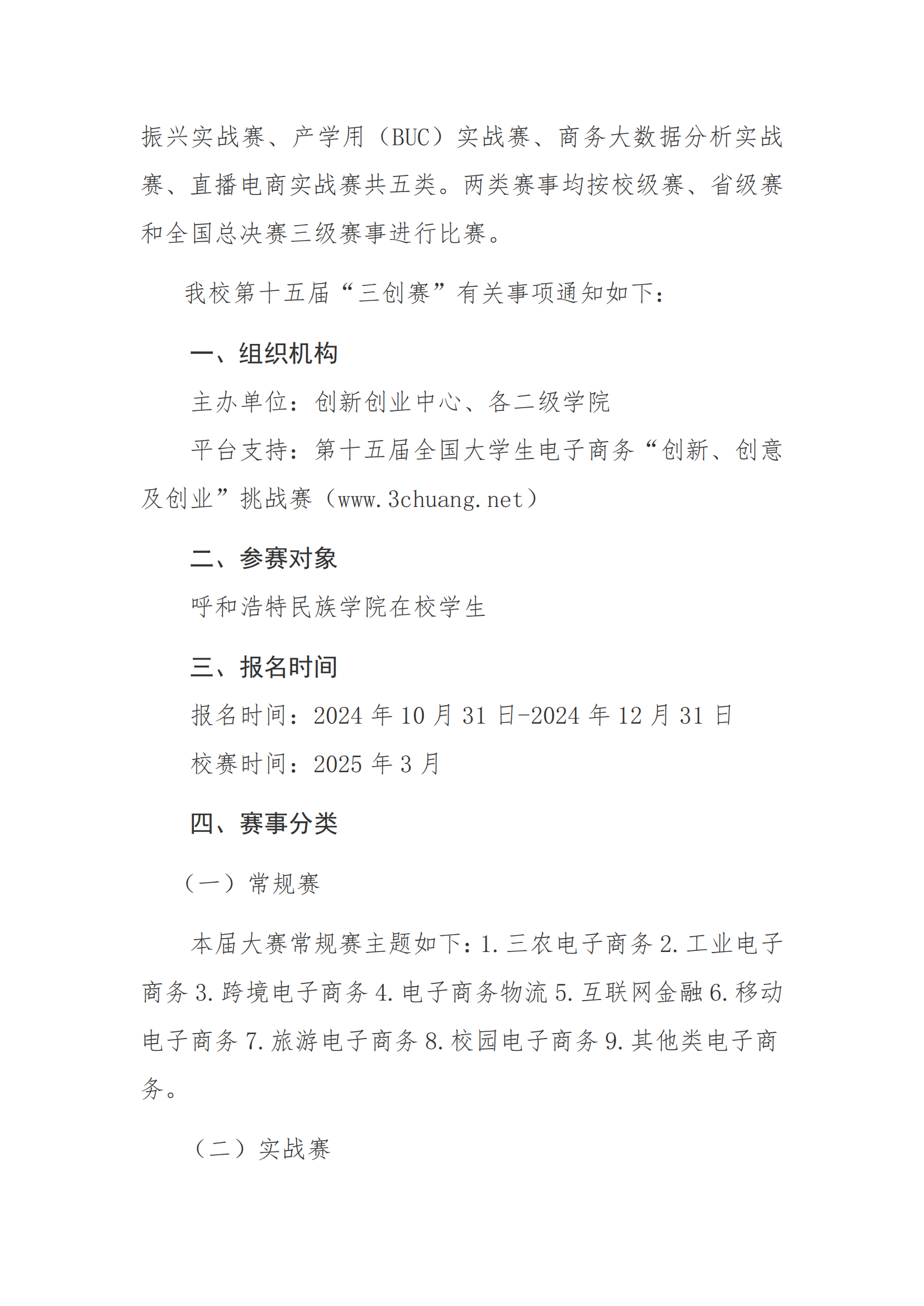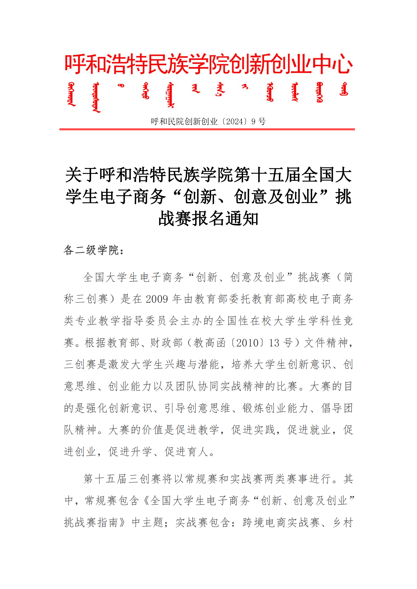 關于呼和浩特民族學院第十五屆全國大學生電子商務“創新、創意及創業”挑戰賽報名的通知