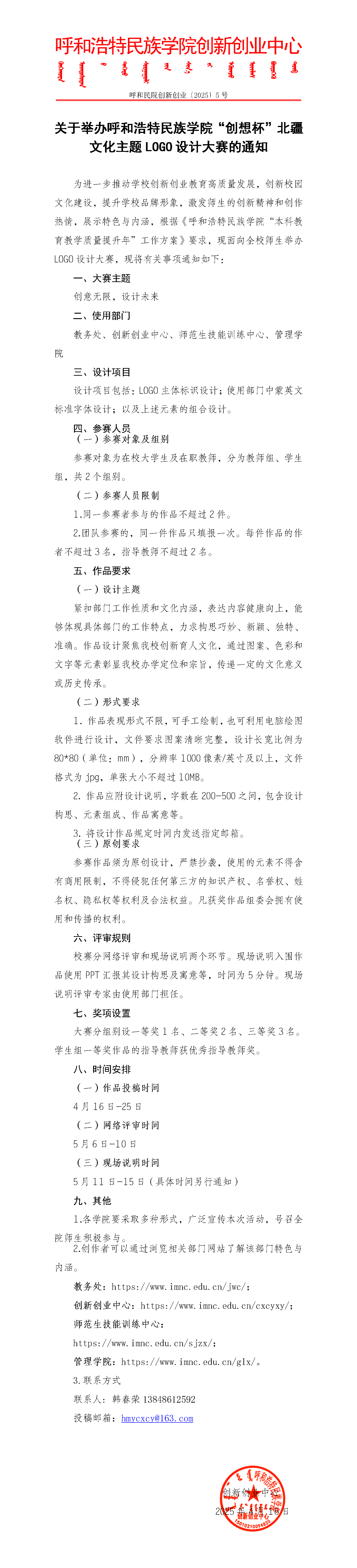 關于舉辦呼和浩特民族學院“創想杯”北疆文化主題LOGO設計大賽的通知