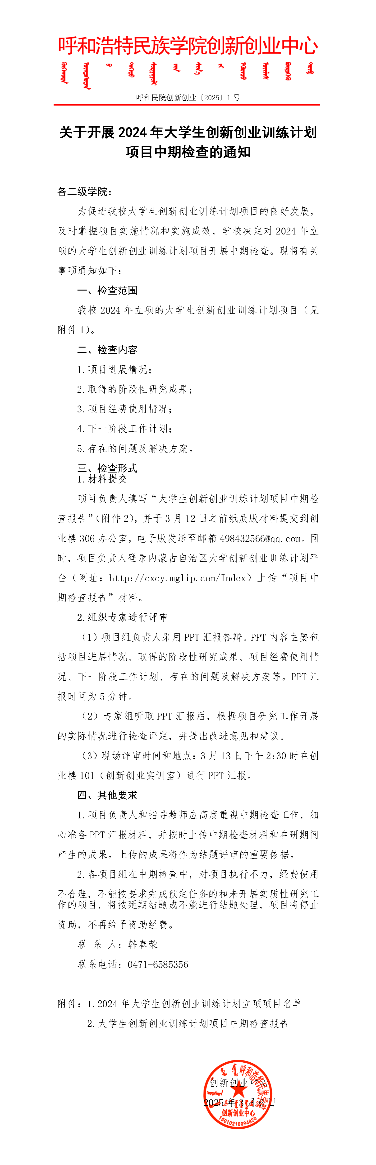 關于開展2024年大學生創新創業訓練計劃項目中期檢查的通知