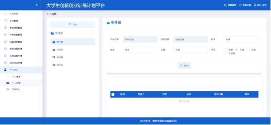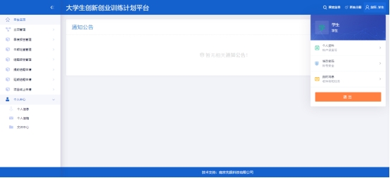 登錄平臺后,點擊右上方,進行基本信息維護,可進行修改個人資料、修改密碼等操作。也可點擊“個人中心”下的“個人信息”菜單,進行基本信息維護。