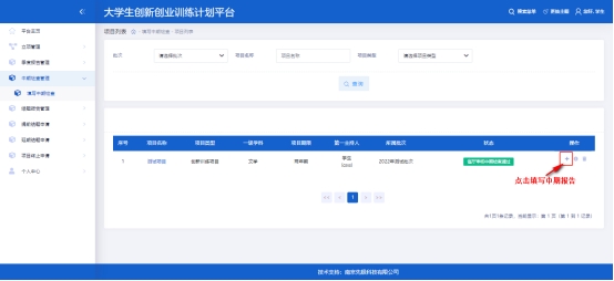 點擊“中期檢查管理”下“填寫中期檢查”菜單,點擊“+”按鈕,填寫中期報告。填寫中期檢查后,可以先“暫存”,暫存時可以修改或刪除,提交后,則不能修改。