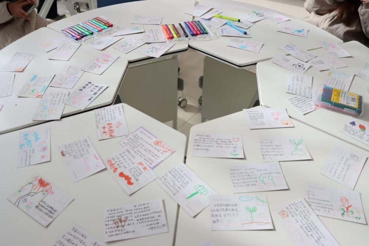 此外,本次活動還組織了校園關(guān)愛行動。志愿者們分組前往學校的各個角落,與同學們?yōu)榱羰貎和H手制作慰問卡片和小禮品,希望他們未來更加美好。不少同學在“kt板”上簽名,表達自己對本次活動的支持。