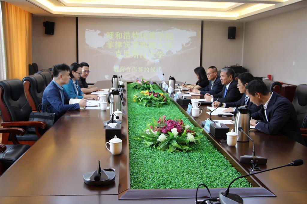 會談中,格日樂圖校長向菲方代表團一行介紹了我校在人才培養、科研實力、學校發展規劃及國際交流等方面的情況。菲方代表依次介紹了萊西姆大學、克里斯汀大學的基本情況、招生辦法和辦學模式等。會上,雙方就聯合培養、師資培訓、師生互訪及舉辦國際學術會議等事宜進行了深入探討。