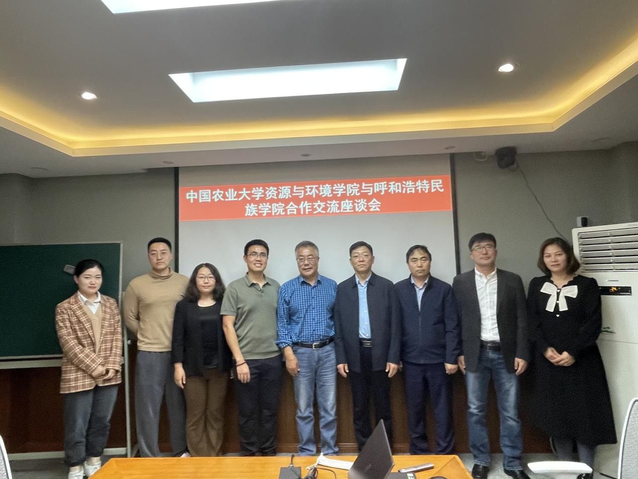 座談會上,中國農業大學資源與環境學院副院長羅文海從歷史沿革、專業構成及特色、科研創新、突出成就、社會服務、科技小院等方面詳細介紹了中國農業大學資源與環境學院的整體情況。高喜天從學校特色優勢、學科專業建設、人才培養、師資力量、生源組成等方面簡要介紹了學校整體情況,期待借助中國農業大學的資源優勢和人才優勢以“大手拉小手”的方式推動我校教師團隊和學科建設,加速學校轉型發展,為內蒙古自治區培養更多優秀人才。李國學教授發言中表示愿提供全力支撐與幫助,借鑒“科技小院”模式加強人才培養,圍繞國家重大發展戰略,整合提煉出更加鮮明的學科特色,推動兩校相關學科的合作交流與發展建設。