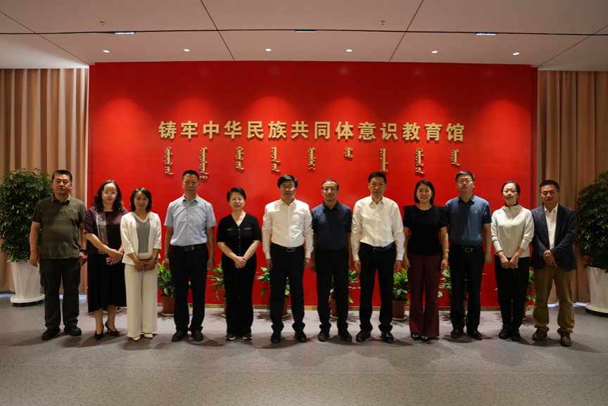 劉九萬(wàn)、韓偉新向黃海一行介紹了學(xué)校在貫徹落實(shí)鑄牢中華民族共同體意識(shí)主線、推進(jìn)“兩館兩廊一園”陣地建設(shè)、加強(qiáng)鑄牢中華民族共同體意識(shí)宣傳、教育、研究等方面的情況。雙方表示,要進(jìn)一步加強(qiáng)交流,共同為全方位建設(shè)模范自治區(qū)、落實(shí)“五大任務(wù)”提供助力。