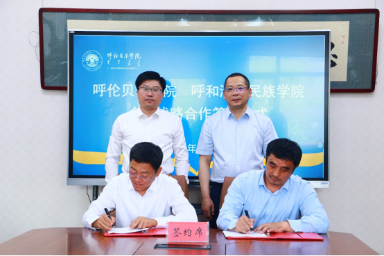 6月14日,學校黨委副書記、校長韓偉新帶隊訪問呼倫貝爾學院并簽署全面戰略合作框架協議。呼倫貝爾學院黨委副書記、校長張玉柱,黨委委員、副校長敖特根參加座談和簽約。校黨委委員、副校長高喜天,呼倫貝爾學院黨委委員、副校長敖特根分別代表雙方簽署全面戰略合作框架協議。簽約儀式由敖特根主持。
