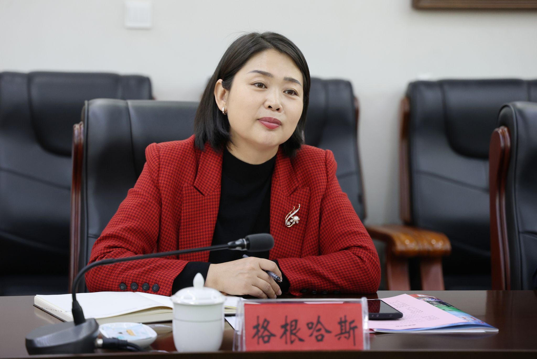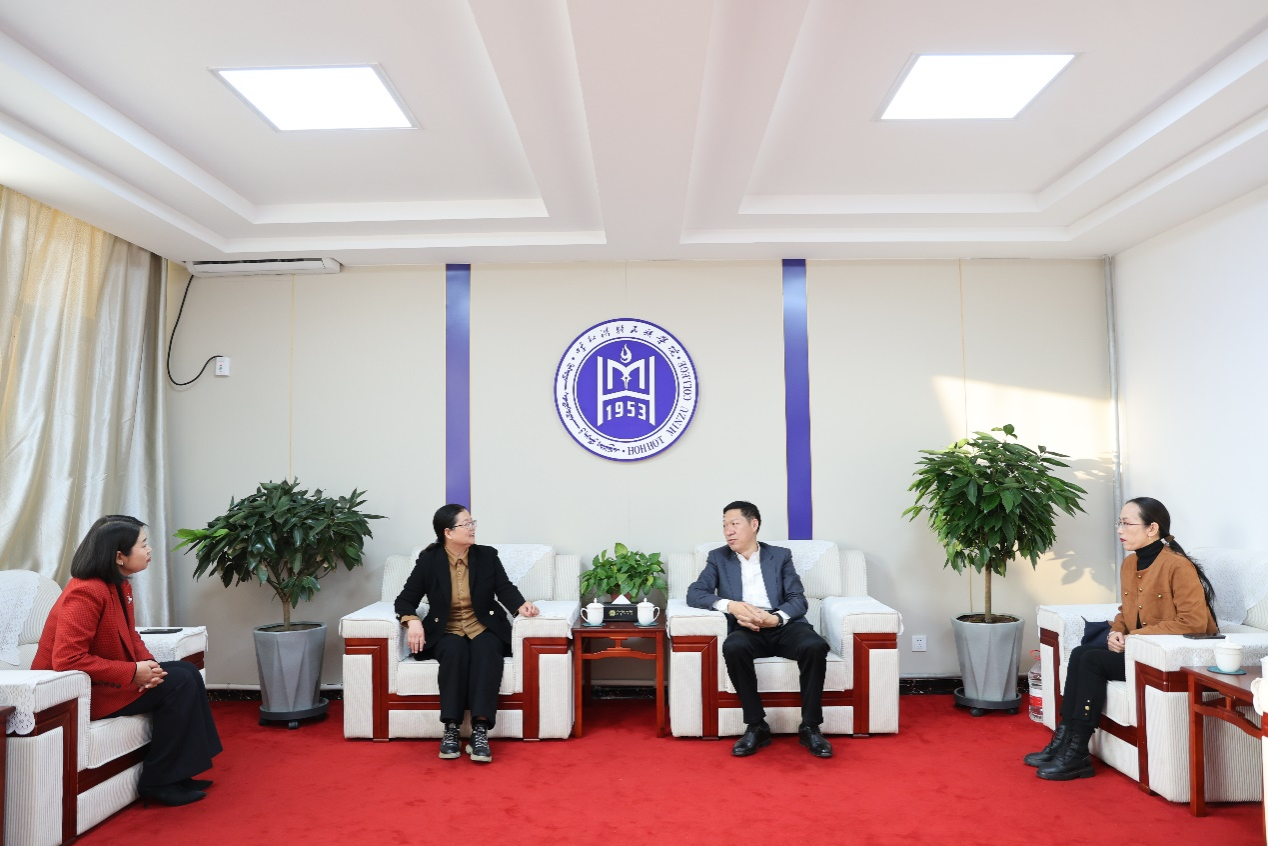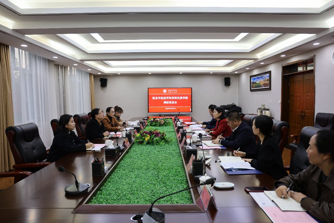 校黨委副書記格根哈斯主持座談并致歡迎辭。她圍繞學校把民族團結進步教育作為學校發展最鮮亮的底色,落實立德樹人根本任務,結合黨建工作、宣傳思想文化工作、特色專業和科研基地建設等經驗做法作了交流。