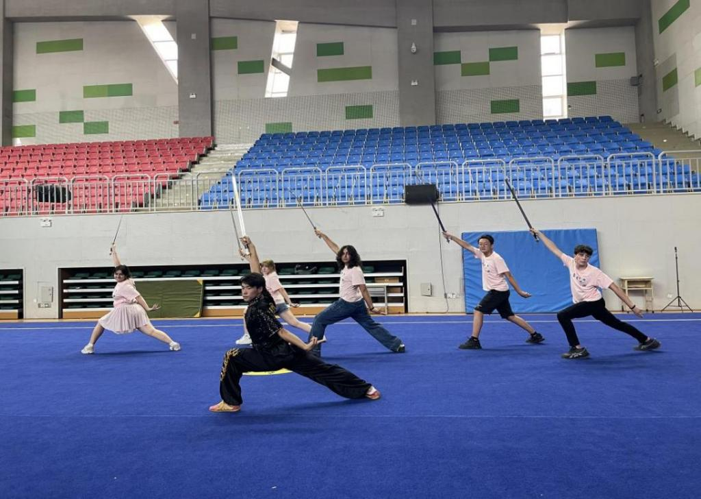 體育學院的中華傳統武術教學實踐展示更加點燃了訪問團師生的熱情。從剛勁有力的拳術到行云流水的器械演練,訪問團師生近距離感受到了中華武術的精氣神,在一招一式的切磋里,與我校傳統武術專業學生進行了互動交流,體會到了中華傳統武術的深厚底蘊。