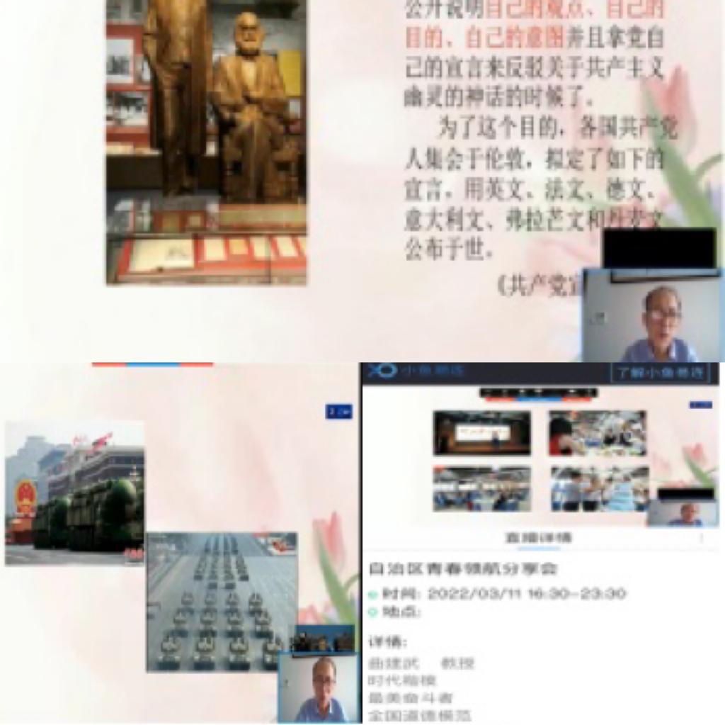 2022年3月11日,公共管理學院黨總支組織全體黨員和班主任、輔導員老師觀看了由內蒙古自治區黨委宣傳部、自治區教育廳、共青團內蒙古自治區委員會依托高校思政名師工作室搭建的“青春領航”分享會推出的“時代楷模”榮譽稱號獲得者——大連海事大學曲建武教授就如何幫助學生系好人生的“扣子”視頻講座。
