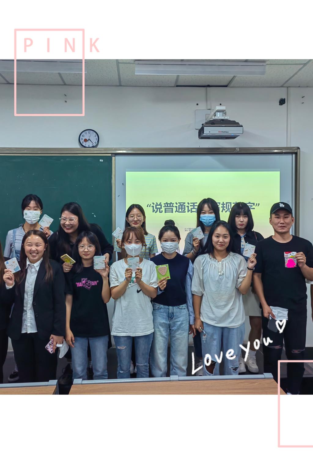 2022年9月16日上午,公共管理學院學生第二黨支部組織全體黨員在南操場西側開展“心相印,語相通,和諧校園樂融融”宣傳推廣普通話活動。