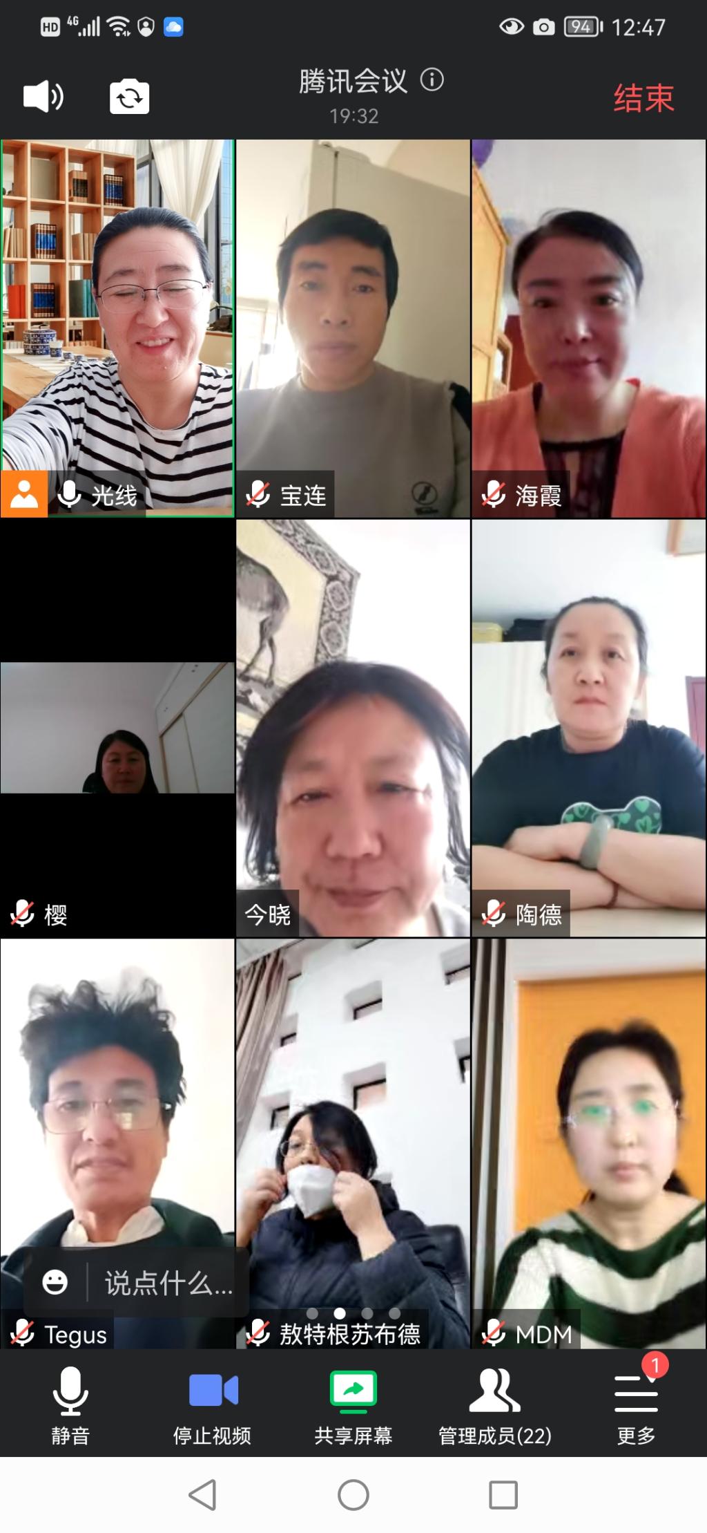 為深入學(xué)習(xí)領(lǐng)會(huì)和全面貫徹習(xí)近平新時(shí)代中國(guó)特色社會(huì)主義思想,進(jìn)一步提高黨員的黨性修養(yǎng),12月28日,公共管理學(xué)院教工黨支部在線上開(kāi)展黨的二十大精神專題學(xué)習(xí)會(huì)議,會(huì)議由支部書(shū)記額爾敦格日樂(lè)主持,學(xué)院全體教師參加。