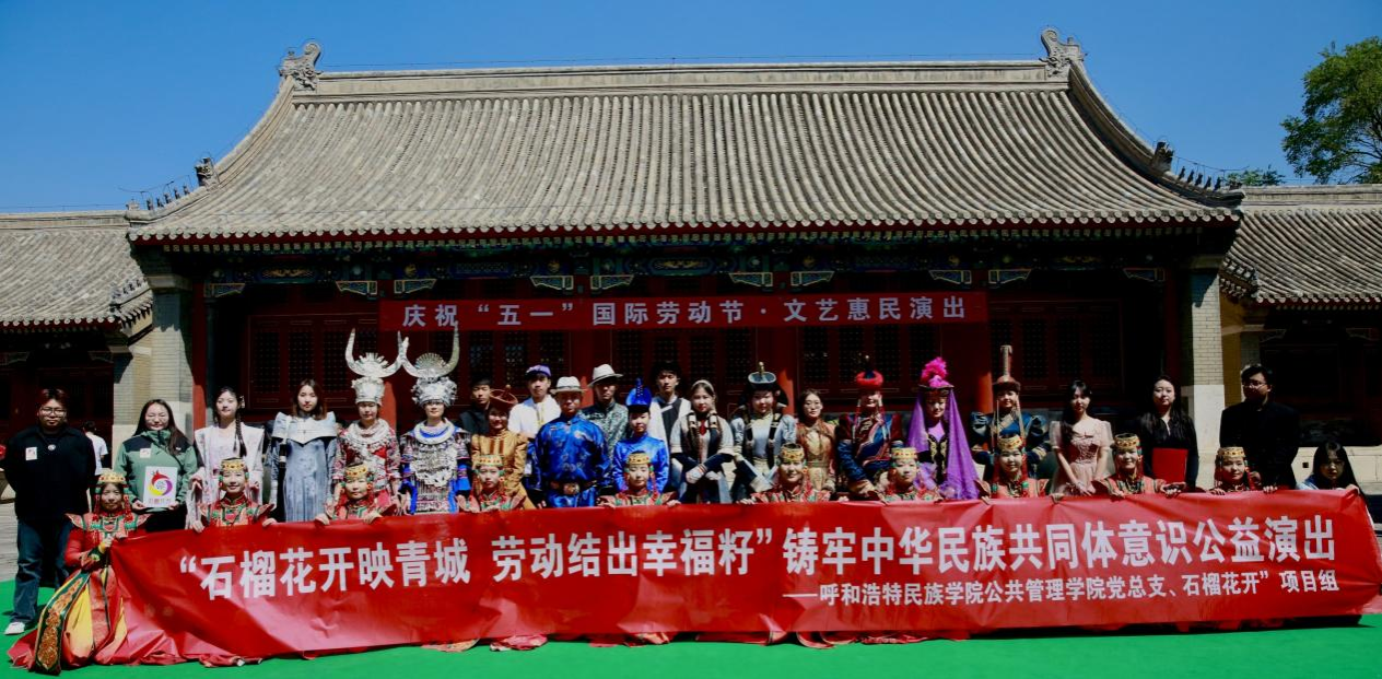 為迎接“5.1”國際勞動節,呼和浩特民族學院公共管理學院黨總支聯合呼和浩特清和碩恪靖公主府博物館舉辦了“石榴花開映青城勞動結出幸福籽”公益演出。5月1日上午,在具有三百多年歷史的清和碩恪靖公主府的古建筑中上演了一場別開生面的大學生惠民演出。學生來自呼和浩特民族學院的大學生創新創業訓練項目“石榴花開”團隊,團隊由文藝演出策劃組、文創產品策劃組、文化市場調研組構成。“石榴花開”演出團在老師們的指導下精心編排了相聲、舞蹈、馬頭琴演奏、民族服飾展示等節目,謳歌勞動人民,展現各民族團結一心的美好畫面。