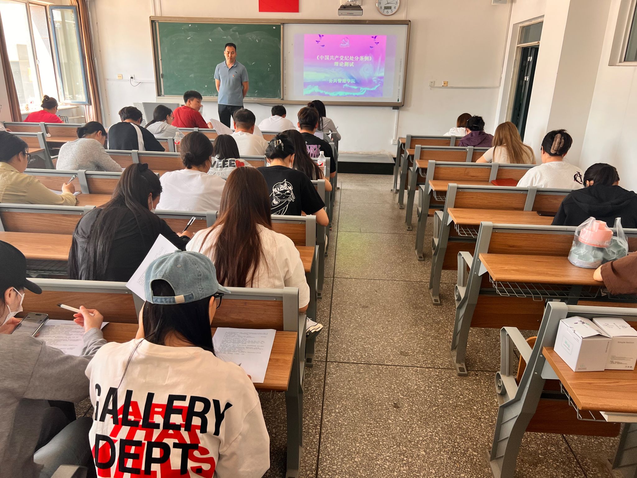 隨后學(xué)院教工黨支部、學(xué)生黨支部開展黨紀(jì)學(xué)習(xí)教育理論測(cè)試。此次測(cè)試采取閉卷形式進(jìn)行,重點(diǎn)圍繞《中國(guó)共產(chǎn)黨紀(jì)律處分條例》及其修訂的內(nèi)容,旨在調(diào)動(dòng)全體師生黨員學(xué)習(xí)黨紀(jì)黨規(guī)的積極性,筑牢師生黨員廉潔自律防線。