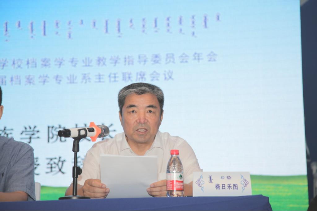 7月31日至8月3日,由我校公共管理學院承辦的2019年教育部高等學校檔案學專業教學指導委員會年會暨第二十八屆檔案學專業系主任聯席會議在呼和浩特召開,會議主題為“打造檔案學專業‘金課’”。我校校長格日樂圖、副校長阿拉坦倉、國家檔案局政策法規研究司副司長張向軍、國家檔案局政策法規研究司教育處處長梁琨、內蒙古自治區檔案局(館)局(館)長張琛、內蒙古自治區檔案局(館)副局(館)長徐春陽,教育部高等學校檔案學專業教學指導委員會(以下簡稱檔案學教指委)全體委員及來自全國38所高校的檔案學專業系主任等共70名代表出席并參加了會議。