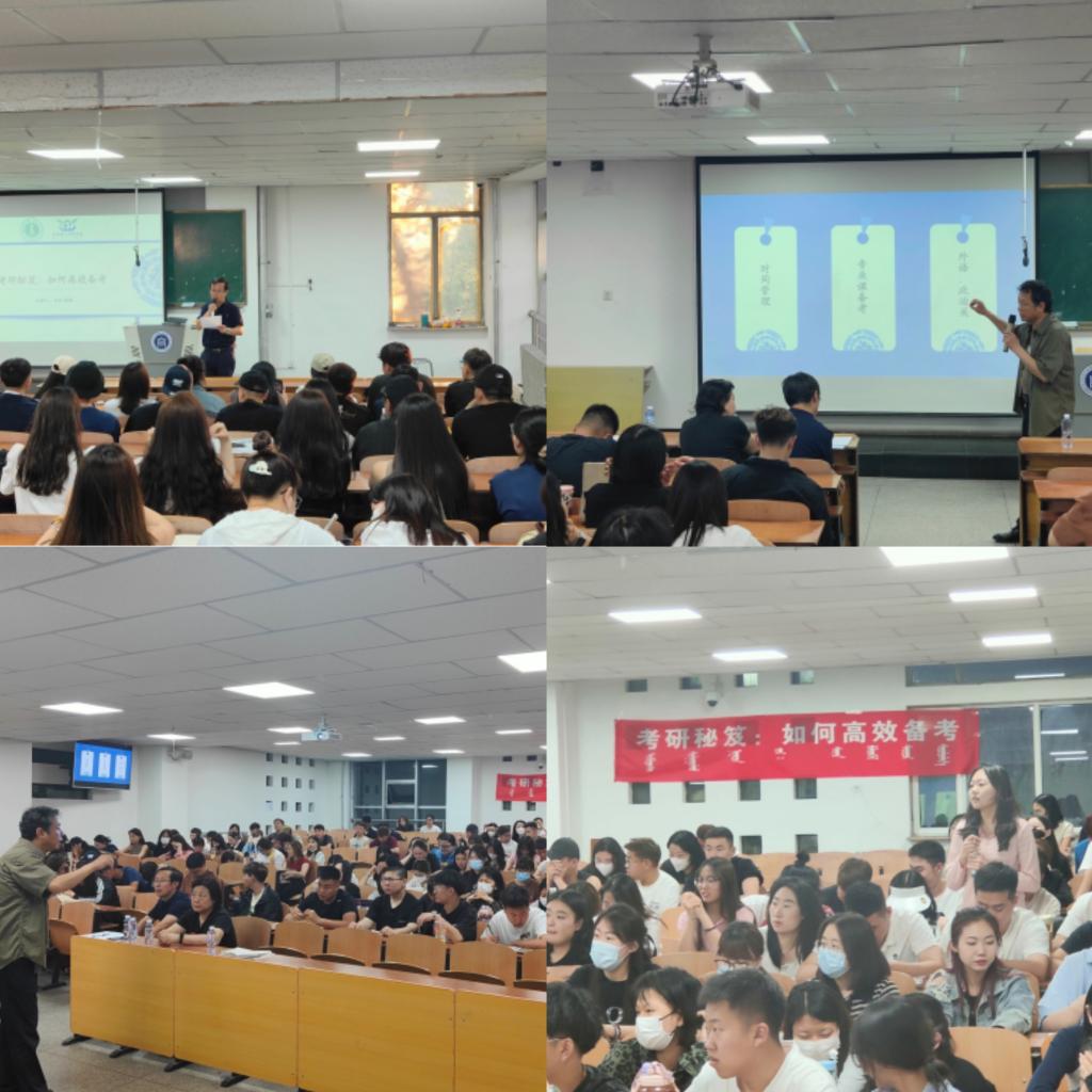 為加深同學們對考研的了解、明確考研目標、堅定努力方向,2023年6月7日晚,公共管理學院在尚智樓313教室,舉辦了主題為“考研秘籍——如何高效備考”的講座。講座邀請了內蒙古師范大學碩士研究生導師雙金教授執講,院長哈斯同力嘎、副院長額爾敦格日樂和今曉教授和2024屆畢業生聆聽講座。