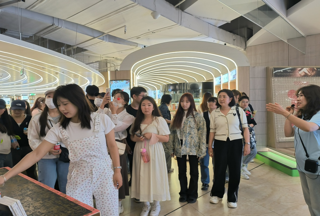 在新華書店圖書大廈參觀考察中,新華書店創立的“漢字藝術”研學基地最為吸引同學們,同學們通過各種數字化交互體驗和活動,感受漢字魅力的同時,也學習了新華書店在數字化時代如何進行經營模式的創新和研學基地的策劃運營。