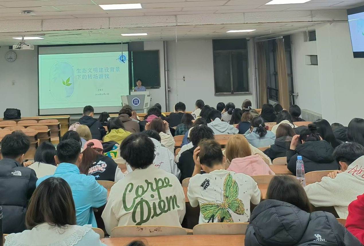 2024年10月16日晚上19::30在尚智樓313教室,文化產業管理教研室開展了專題講座活動。本次講座由文化產業管理教研室引進博士王桂蘭教授為教研室全體老師和2024級文化產業管理1-2班學生和2023級、2022級部分學生代表講授了題為“新時代生態文明建設背景下的轉場游牧”的講座。