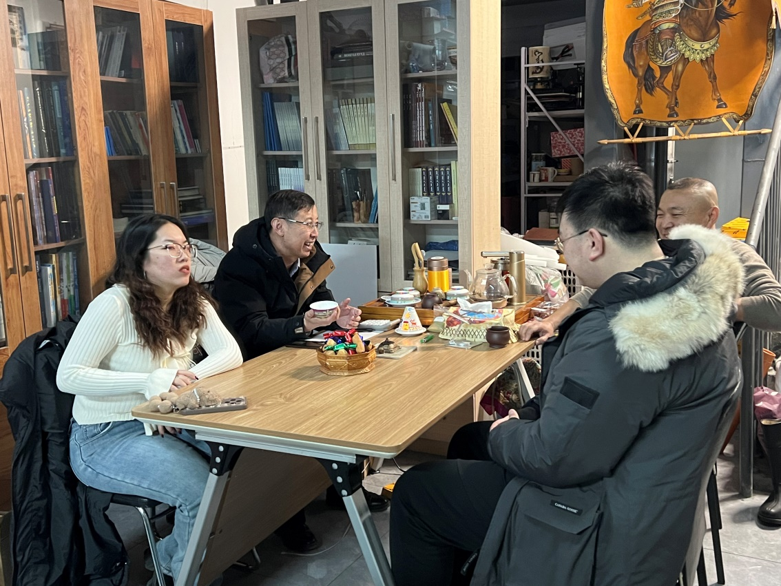 在該公司合伙人額爾登道格套及其團隊的熱情陪同下,我院一行九人參觀了其文化創意產品展示區,感受到了其對民族文化的深入挖掘和對現代化轉化的重視。隨后,雙方就如何將民族文化與現代創意產業相結合并推動其發展進行了座談交流。額爾登道格套詳細介紹了其公司在文化創意產品開發方面的豐富經驗和所取得的成就,同時提出了他們在市場推廣方面的策略以及所遇到的挑戰。哈斯同力嘎院長表示,愿意結合學院的專業特色,在創新創業、產學研合作等方面與其開展深入合作。同時,協會成員也運用他們所學的專業知識,在公司產品創新和品牌建設等領域提出了創新想法。
