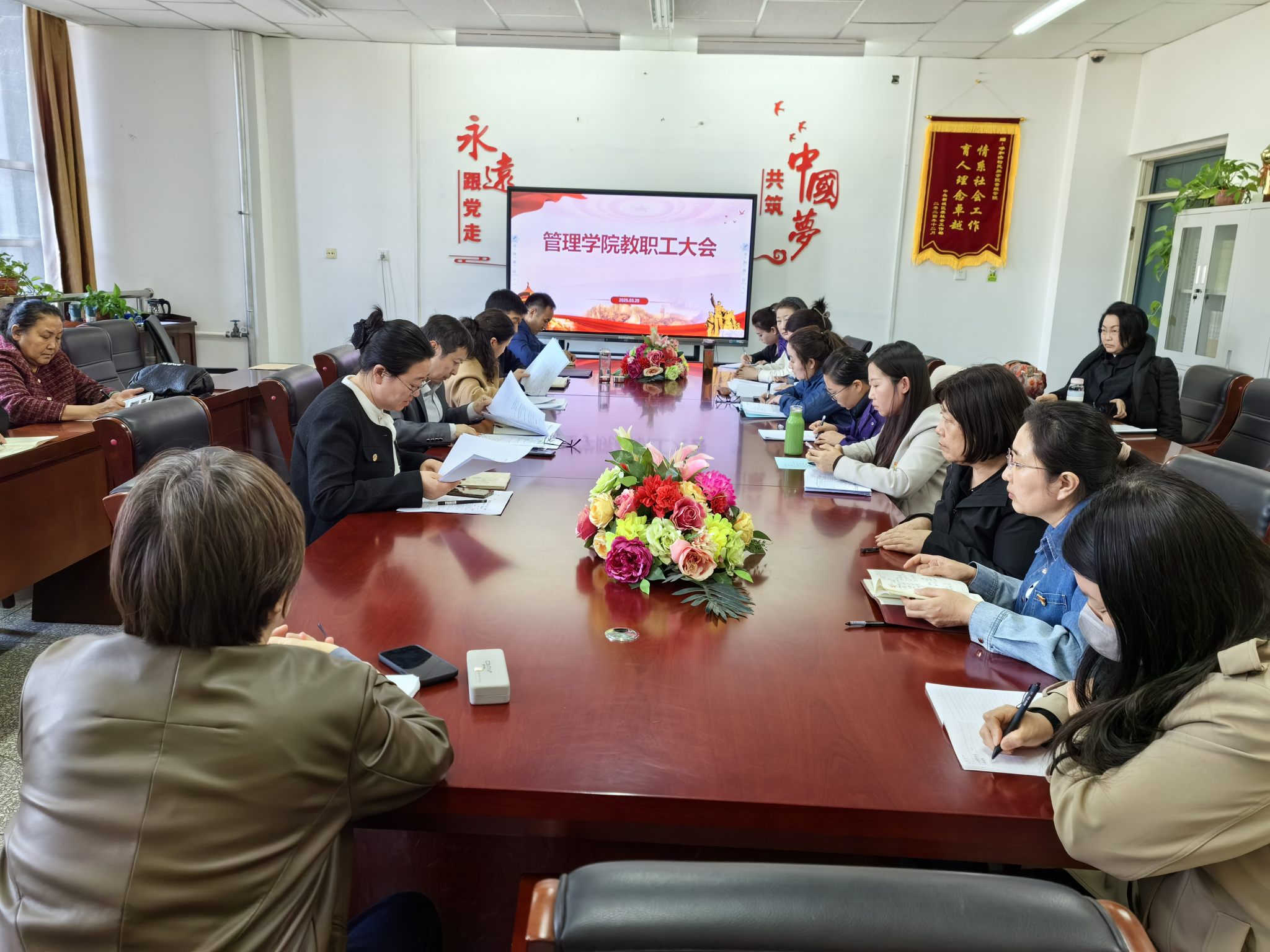 為全面落實“本科教育教學質量提升年”活動,持續推動管理學院本科教育教學改革,全面提升本科教育教學質量,同時為確保新學期教學工作平穩有序開展,3月20日,管理學院召開全體教職工大會。