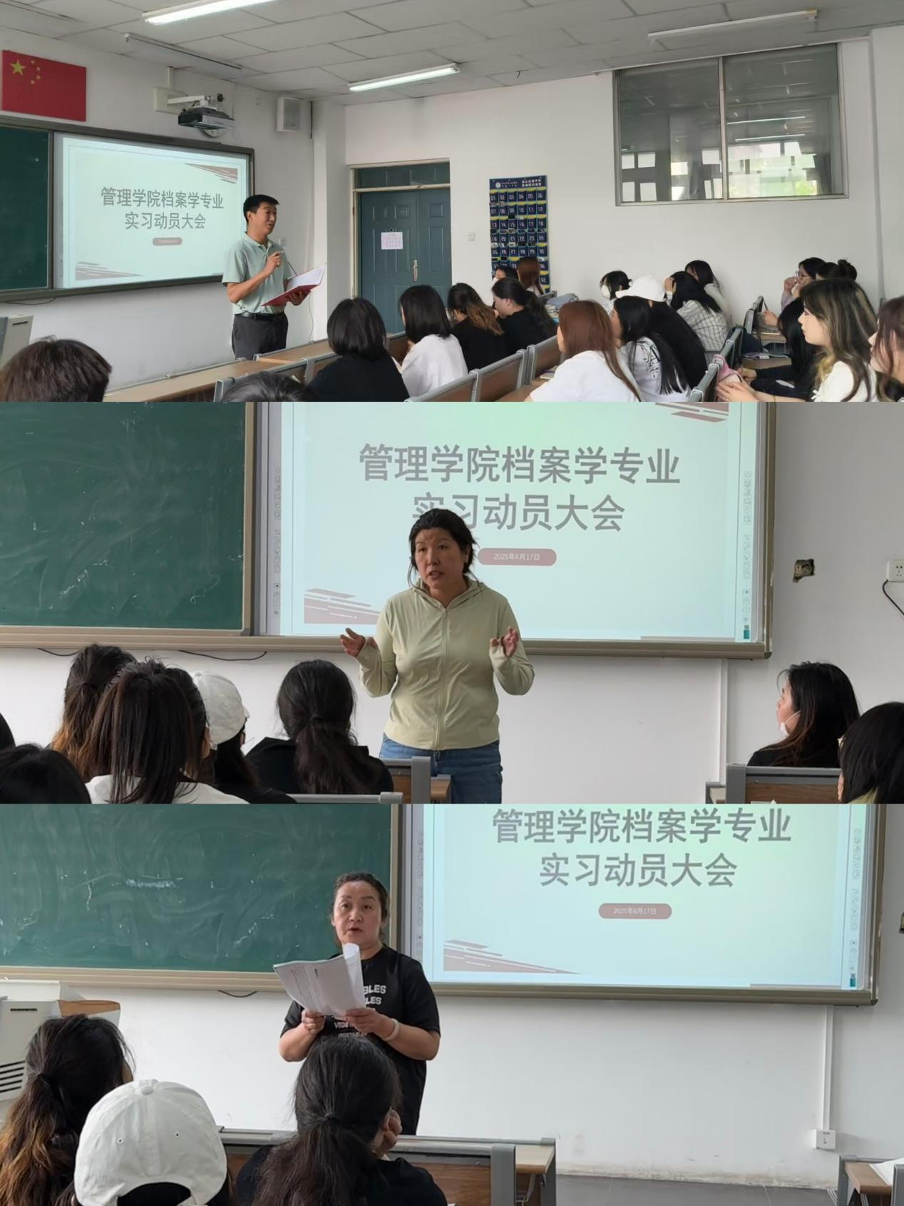 2025年6月17日,管理學(xué)院檔案學(xué)專業(yè)在尚智樓104教室召開2022級(jí)學(xué)生實(shí)習(xí)動(dòng)員大會(huì)。專業(yè)負(fù)責(zé)人青格樂圖、教研室主任烏仁陶德及班主任和哈斯老師出席活動(dòng),與50名即將踏上實(shí)習(xí)崗位的學(xué)子共話實(shí)踐育人新篇章。