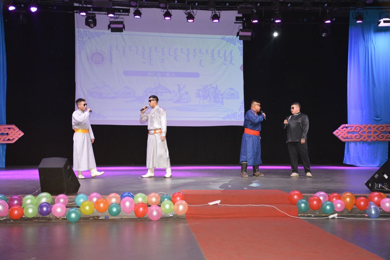 活動從震撼人心的“萬馬奔騰”馬頭琴曲拉開帷幕,緊接著表演了歡快人心的合唱,也有搞笑小品《一念天堂》講述了一個小偷在一場火災中舍身救人的故事,一念天堂,一念地獄,天堂與地獄的選擇,往往就是一念之間,觀看小品后讓人帶入了久久的深思當中。節目中也有絢麗多彩的民族舞,讓人著實感到少數民族文化的豐富多彩。詩歌朗誦《祖國萬歲》真誠的表達了對祖國的深深的祝福。節目最后由特邀嘉賓寶力嘎優美的歌聲結束了本次活動。
