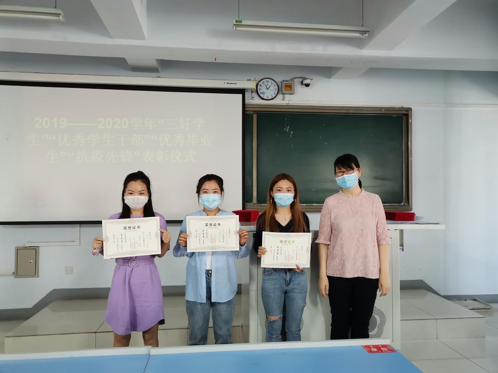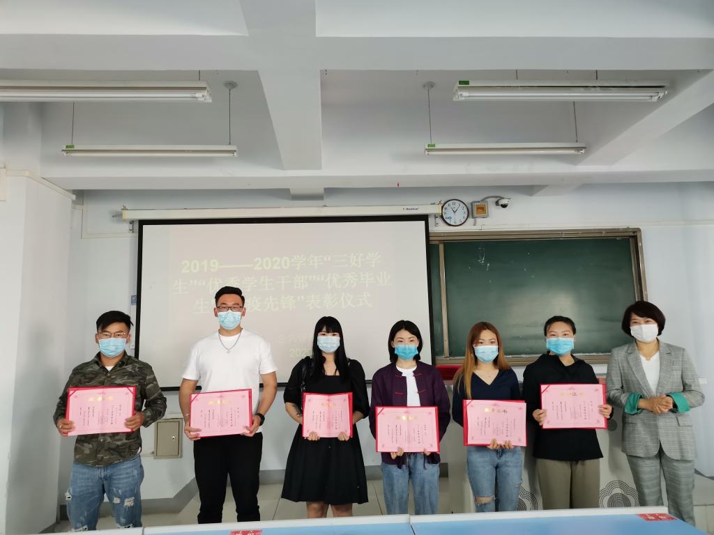 為學習貫徹習近平新時代中國特色社會主義思想和黨的十九屆四中全會精神,深入貫徹落實全國高校思想政治工作會議精神和全國教育大會精神,樹立大學生先進典型,充分發(fā)揮榜樣示范作用,鼓勵廣大學生勤奮學習、積極進取、成才報國,經(jīng)學校研究決定,在2020屆畢業(yè)生順利返校之際,于6月2日上午表彰了公共管理學院2019——2020學年“三好學生”“優(yōu)秀學生干部”“優(yōu)秀團干部”“優(yōu)秀畢業(yè)生”和積極參加抗疫活動的“抗議先鋒”。會議由黨總支副書記額爾敦格日勒主持,學院領導和受表彰的畢業(yè)生共人參加會議。會上,學工辦副主任寶連宣讀了各項表彰決定,黨總支書記海霞、院長吳寶山為受表彰學生頒發(fā)了榮譽證書。最后院長吳寶山講話,勉勵獲獎學生希望同學們再接再厲,繼續(xù)發(fā)揚艱苦奮斗的精神,在新環(huán)境新崗位上取得更優(yōu)異的成績。