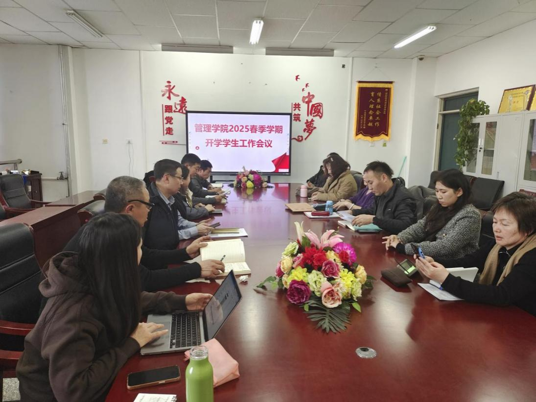 為統(tǒng)籌推進(jìn)新學(xué)期學(xué)生工作,確保開學(xué)各項(xiàng)工作平穩(wěn)有序開展,管理學(xué)院于2月25日下午在學(xué)院會(huì)議室召開2025年春季學(xué)期學(xué)生工作部署會(huì)。黨總支書記格日樂、黨總支副書記青格樂圖及全體輔導(dǎo)員、班主任參會(huì)。