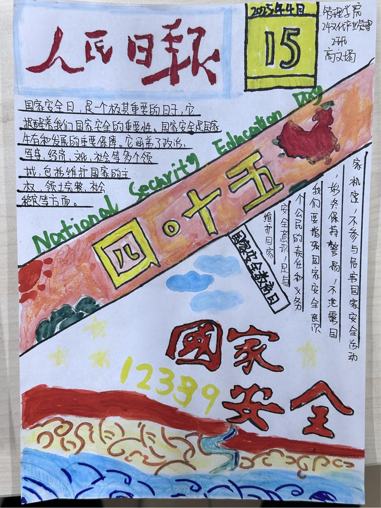 與此同時,學院還舉辦了國家安全教育手抄報比賽。同學們積極響應,圍繞國家安全主題,創作出一幅幅內容豐富、形式多樣的手抄報作品。這些作品不僅展示了同學們的藝術才華,更體現了他們對國家安全的深入思考與深刻理解。