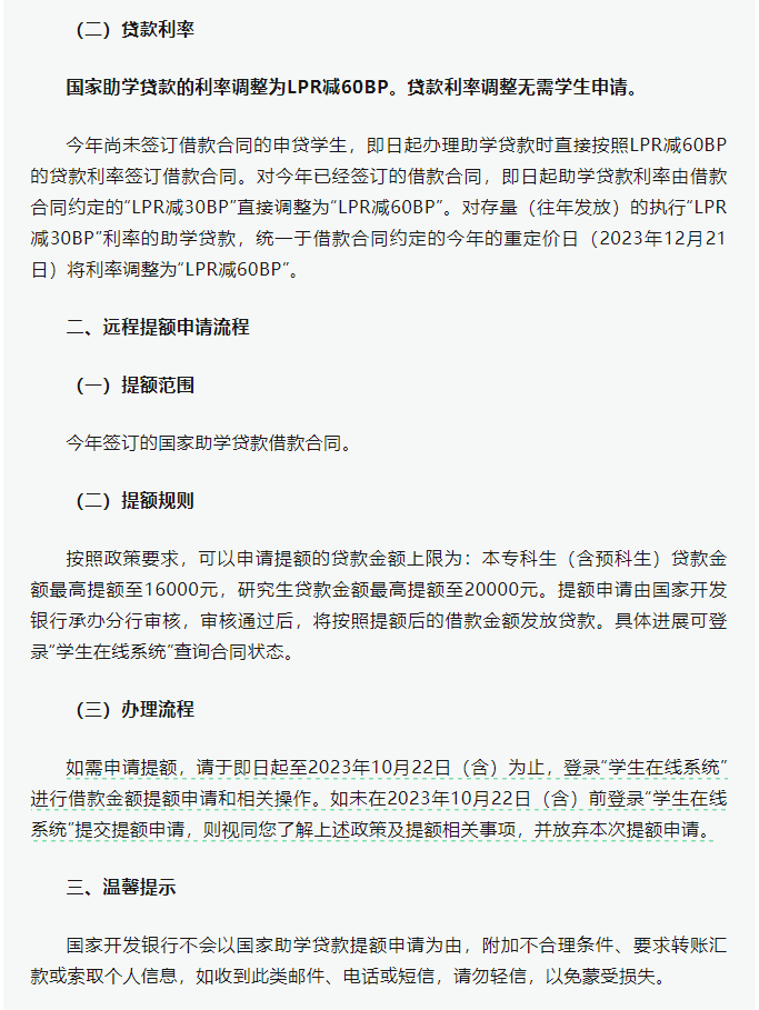 轉發《國家開發銀行承辦的國家助學貸款額度提升和利率調整的公告》