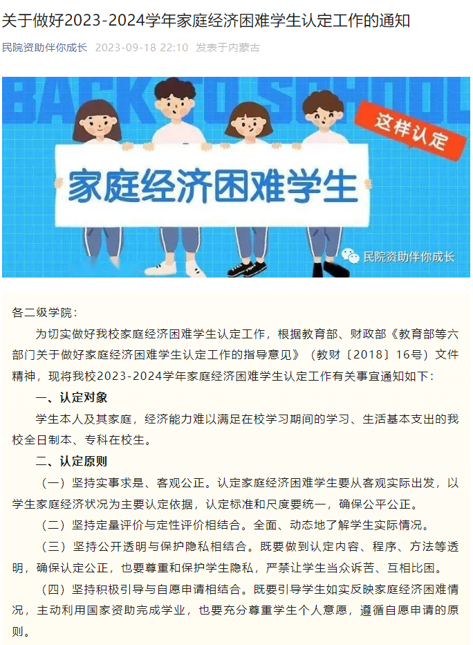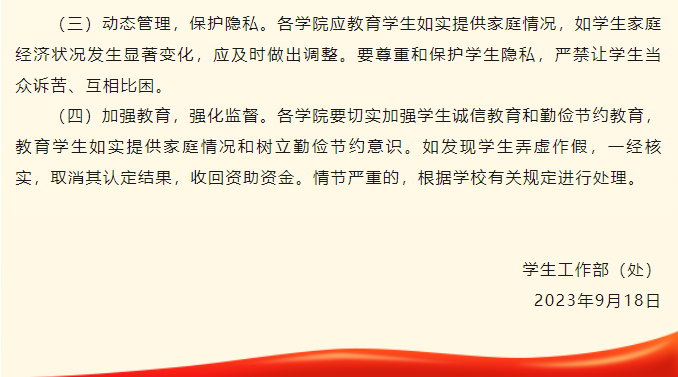 轉載學校黨委學生工作部(處)《關于做好2023-2024學年家庭經濟困難學生認定工作的通知》