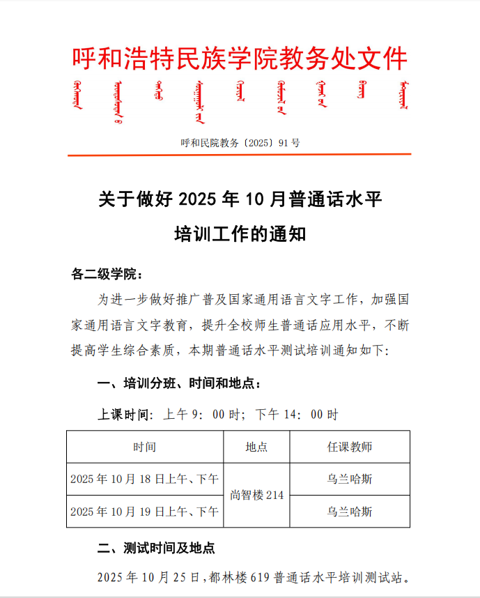 關于做好 2025 年 10 月普通話水平 培訓工作的通知