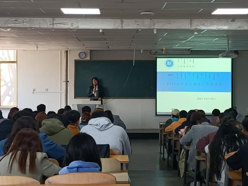 為切實做好2021屆畢業生就業工作,充分發揮班主任引領作用,實現學院畢業生高質量就業,4月13日下午4:00時,在尚智樓214教室召開了2021屆畢業生就業工作推進會。會議由黨總支書記海霞主持,學院黨總支副書記、學工辦主任、畢業班班主任及全體畢業生參加。