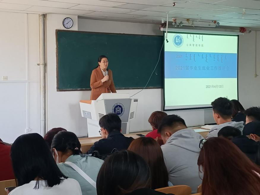 會上,黨總支書記海霞傳達了學校就業工作會議精神,在分析當前畢業生就業狀況基礎上對下一階段工作做了安排部署,指出要高度重視、精心謀劃,全員動員、精準發力,多措并舉,有效推進,大力推進畢業生更充分更高質量就業。黨總支副書記額爾敦格日勒進行了動員講話,鼓勵廣大畢業生一要樹立正確的就業觀和擇業觀,開闊就業思路,找到未來的發展方向;二要堅定就業信心,在應聘過程中做好充分準備,保持良好就業心態,積極行動,爭取更多的就業機會。最后,學院輔導員前達蒙老師圍繞就業工作業務辦理、就業協議書填寫、“北疆就業”平臺的畢業生簽約和派遣等環節進行了詳細講解。