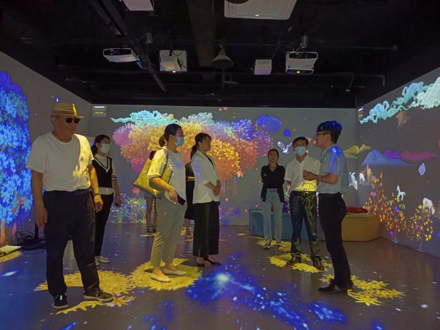 學院一行人員在企業副總經理范鑫磊的指引下參觀了企業實驗室,體驗了公司研發的數字化成長系列產品以及沉浸式互動展示技術的系列內容,聽取工作人員對企業發展概況、企業運營平臺的介紹,了解了企業規模和企業文化。隨后雙方進行了深入的座談交流,聽取企業未來發展前景、對人才培養的需求和教學科研等方面長期合作的思路,并就人才培養、校企合作、共建產教融合基地等工作充分交換了意見。