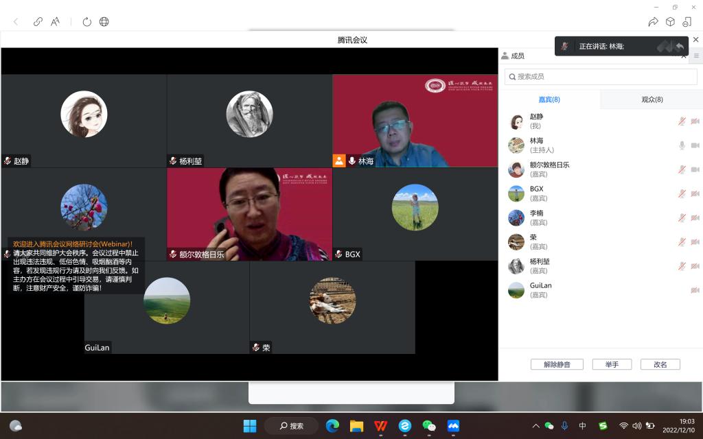 12月10日晚,公共管理學(xué)院利用騰訊會(huì)議平臺(tái)舉辦了“文化產(chǎn)業(yè)‘嗨起來’”行業(yè)發(fā)展前沿線上講座。本次講座在合作企業(yè)北京匠成教育科技公司的支持下請(qǐng)到鯨世科技鯨世文化創(chuàng)始人兼首席執(zhí)行官、著名多媒體設(shè)計(jì)師楊利堃先生分享了他多年在數(shù)字媒體行業(yè)打拼的工作經(jīng)歷和經(jīng)驗(yàn)。楊利堃老師為多所重點(diǎn)院校培訓(xùn)數(shù)字媒體課程,參與中國傳媒大學(xué)媒體融合與傳播國家重點(diǎn)實(shí)驗(yàn)室互聯(lián)網(wǎng)信息研究院《融“博”之道:博物館情景化的理念、實(shí)踐與未來》的撰寫。先后研究,數(shù)字化賦能城市、數(shù)字化賦能工、數(shù)字化賦能文化,孵化基于敦煌藝術(shù)衍生的沉浸式體驗(yàn)IP《浮天若夢(mèng)》,基于山海經(jīng)故事衍生的沉浸式體驗(yàn)IP《那世山海》。其新技術(shù)應(yīng)用被央視《焦點(diǎn)訪談》等各大媒體采訪報(bào)道。公共管理黨總支副書記額爾敦格日樂代表學(xué)院對(duì)楊利堃老師和匠成教育科技公司對(duì)我院的大力支持表示了衷心感謝。學(xué)院領(lǐng)導(dǎo)班子成員和文化產(chǎn)業(yè)管理專業(yè)師生共100余人聆聽講座。