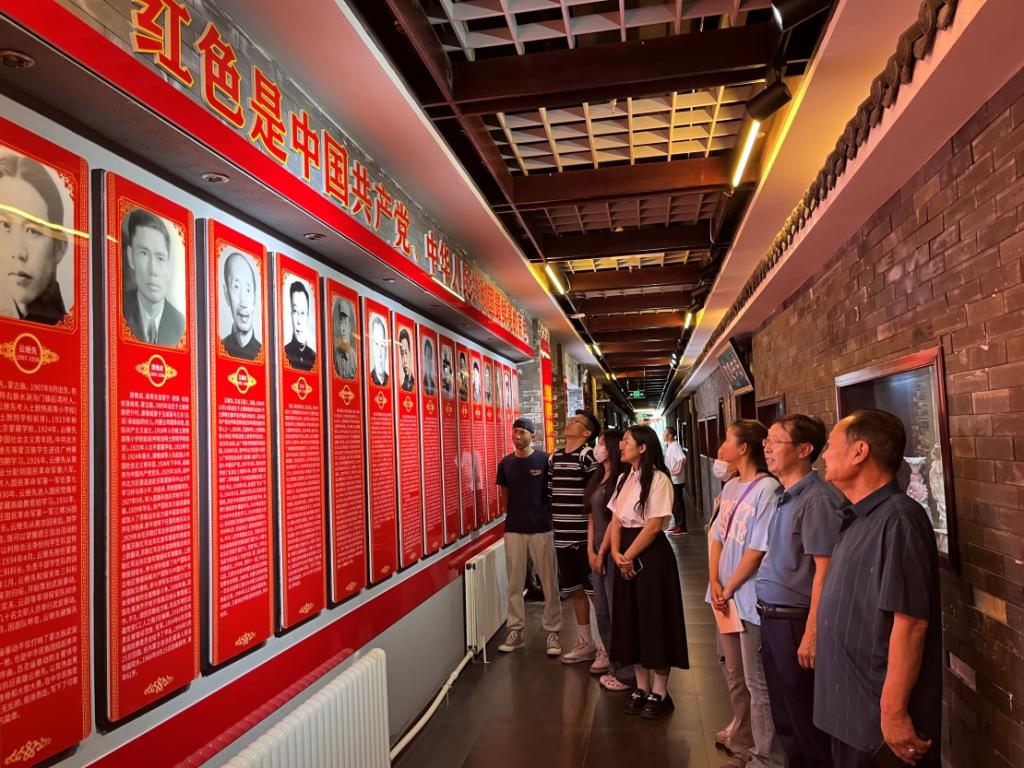 活動第二站到玉泉區大漠文創園的紅色搖籃工作室,工作室負責人額爾登老師的帶領下參觀學習了紅色文化長廊。“紅色搖籃工作室”是呼和浩特土默特學校退休教師額爾登老師創辦的,其宗旨是傳播紅色文化,弘揚紅色精神。其陳列、展覽的物件均為額爾登老師多年來收集的內蒙古地區關于紅色歷史的書籍、剪報、圖片、字畫等。