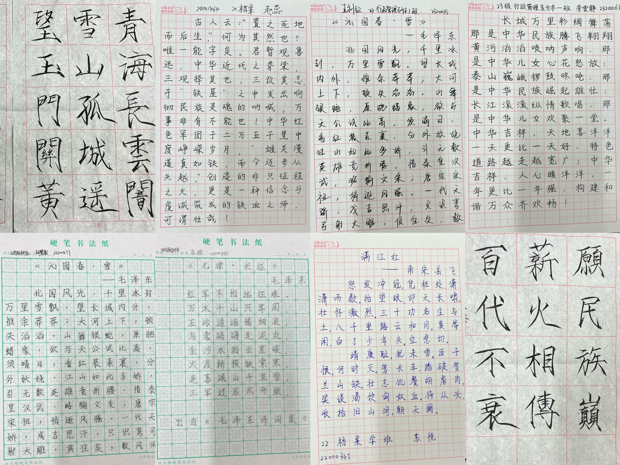 一張張紙上呈現出一個個字跡工整、優美流暢的字,猶如一串串美好的音符跳躍紙上,伴隨著淡淡的墨香,令人陶醉其中!