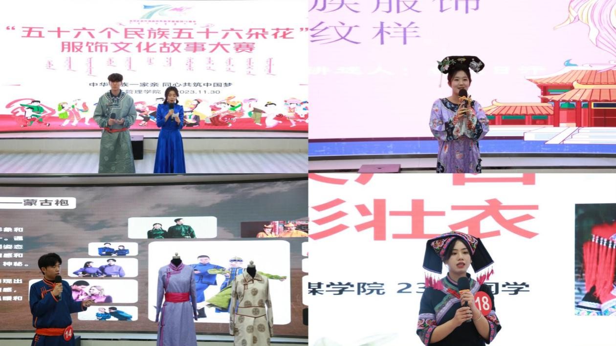 “校慶來臨筑新夢,七秩輝煌育桃李。”為慶祝呼和浩特民族學院建校七十周年,鑄牢中華民族共同體意識,公共管理學院于11月30日開展“五十六個民族五十六朵花”服飾文化故事大賽。大賽由公共管理學院統籌規劃,全校二級學院共42個作品入圍參賽,經過最終遴選出20個作品進入決賽,每位選手都對比賽做了充分的準備,為大家展示了豐富多彩的服飾文化。