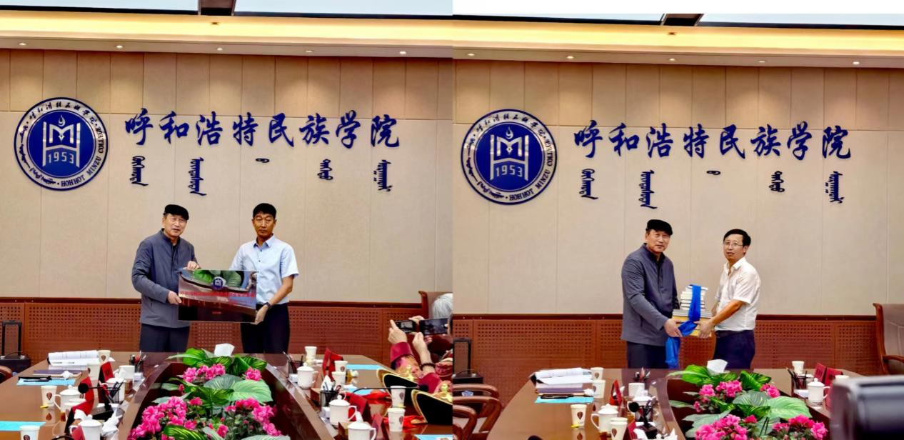 會議最后,公共管理學院與巴林右旗非物質文化遺產保護協會進行了實踐基地的揭牌儀式和巴林右旗非物質文化遺產保護協會對公共管理學院的贈書儀式,雙方并表示此次座談會達到了互相分享、相互學習的效果,以后會加強在非遺文化傳承與保護方面的合作與交流,共同推動非遺文化的發展與繁榮。