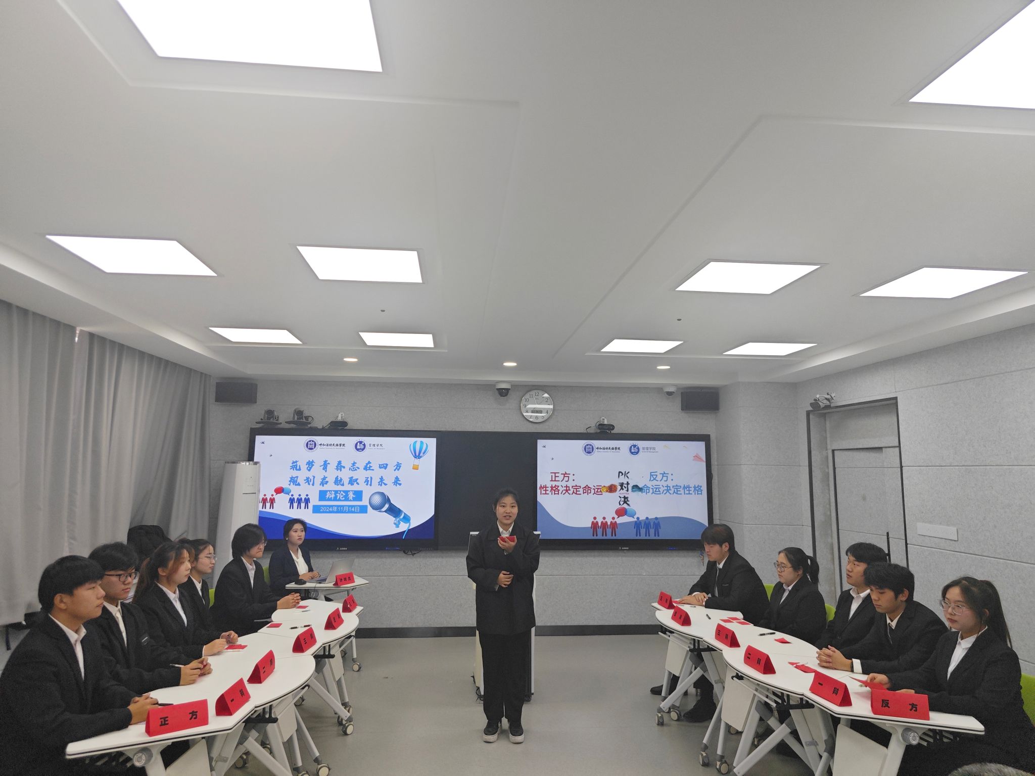 辯論賽上,選手們進行開篇陳詞、自由辯論、總結陳詞等環節,并以“性格與命運對職業發展的重要影響”等問題進行攻防。雙方辯手理例結合、各抒己見,展現出洞察力、邏輯性和表達能力。比賽最終評出最佳辯手及優秀團隊獎。