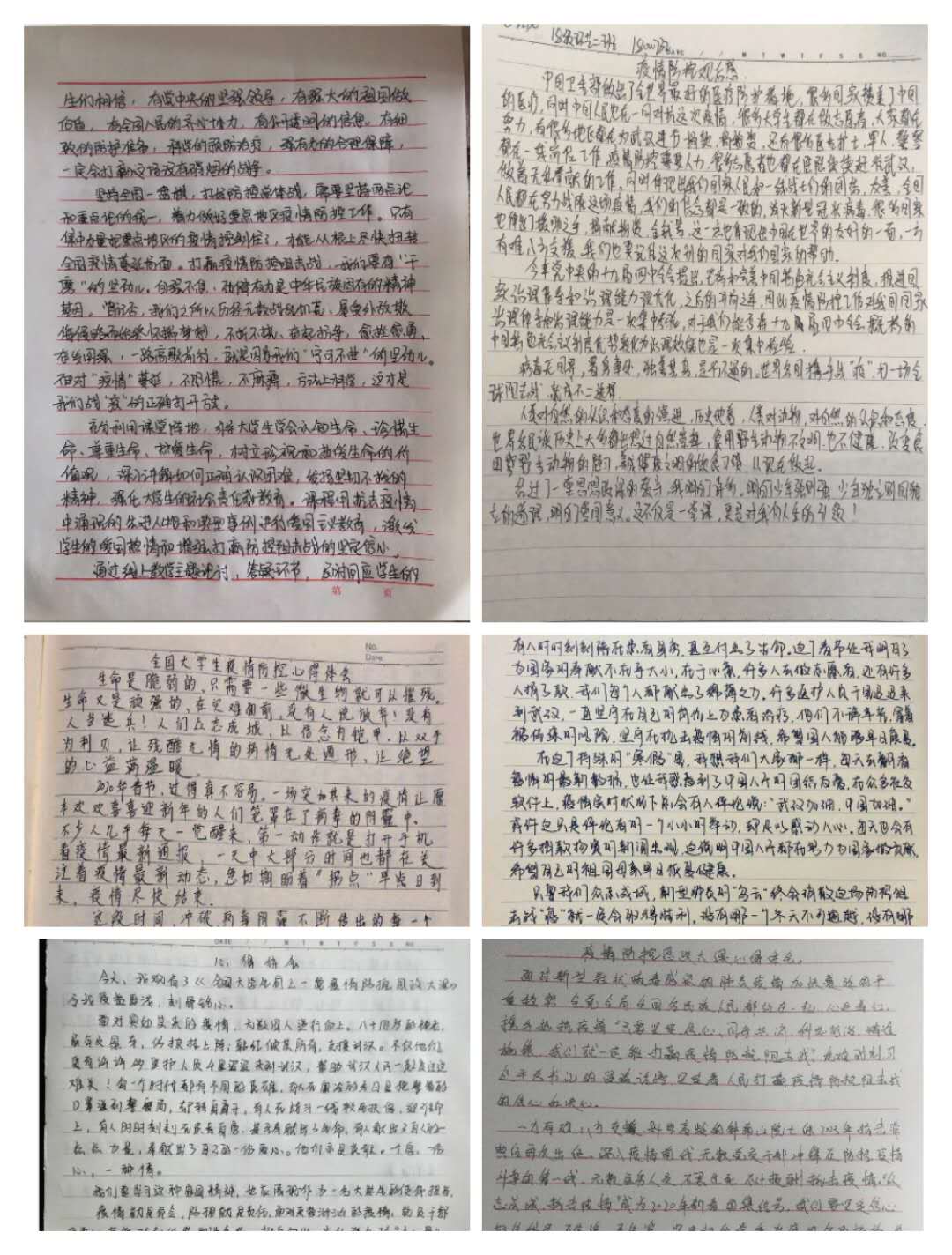 學習觀看結束后,各學院同學們通過書寫觀后感和拍攝觀看照片的形式抒發自己對于本次學習疫情防控思政大課及疫情防控期間的心得體會。同學們紛紛表示,通過學習觀看本次疫情防控思政大課,深深地感受到時代賦予的新使命,充分認識到中國制度的優越性,感受到中國智慧的凝聚力、和中國力量的強大。學生收獲了疫情相關防控知識的同時,思想得到又一次凈化與提升,增強了責任意識,提高了政治覺悟。通過此次思想政治理論課,我 校青年學生對中華民族認同感、自豪感不斷增強,堅定了學生對中華民族偉大復興的歷史使命感和責任擔當。