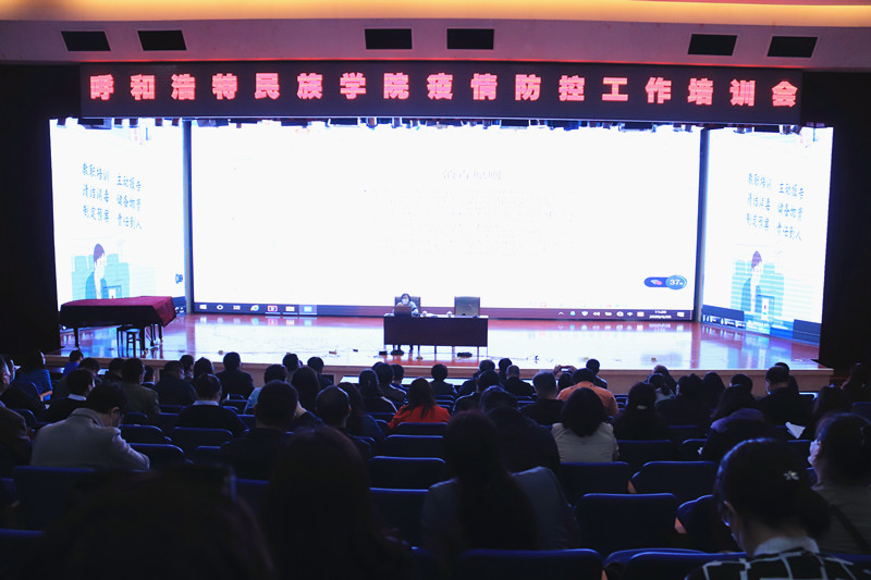為全面做好學校開學前后疫情防控工作,根據學校《開學前后防控新冠肺炎疫情應急預案》,4月28日上午,學校邀請呼和浩特市新城區疾病預防控制中心防疫科主任徐良文在圖書館二樓報告廳舉辦了疫情防控工作培訓講座。各學院書記、院長、班主任、輔導員,各部門負責人,學工部、保衛處、后勤管理處全體人員參加了培訓會。會議由醫務所所長劉晉雯主持。