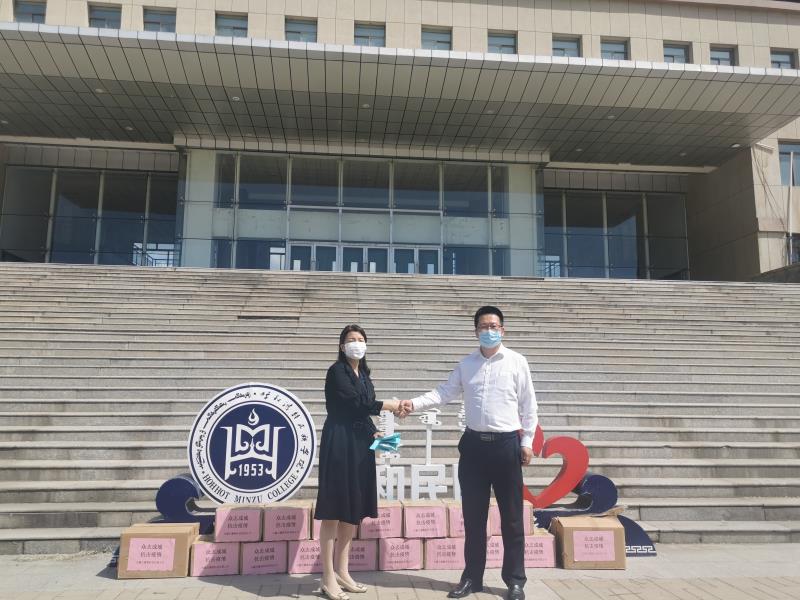 5月19日上午,我校畢業生就業實訓合作企業,內蒙古蒙教科技有限公司副總經理韓繼星一行到學校捐贈防疫物資。捐贈一次性防護口罩1000個,消毒液30箱(300瓶)。副校長納麗娜代表學校接受物資捐助。