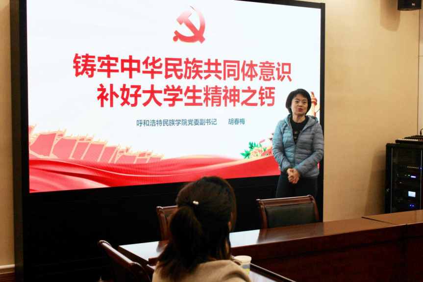 為貫徹落實黨的民族政策,特別是習近平總書記關于民族工作重要指示精神,教育引導廣大師生進一步鑄牢“三個離不開”“五個認同”的思想基礎,促進各族青年的交流交往交融,11月1日19時,在辦公樓四樓會議室,校黨委副書記胡春梅開展了以“鑄牢中華民族共同體意識,補好大學生精神之鈣”為主題的專題黨課。團委全體工作人員、各二級學院團總支書記、輔導員及學生代表聆聽了此次黨課。
